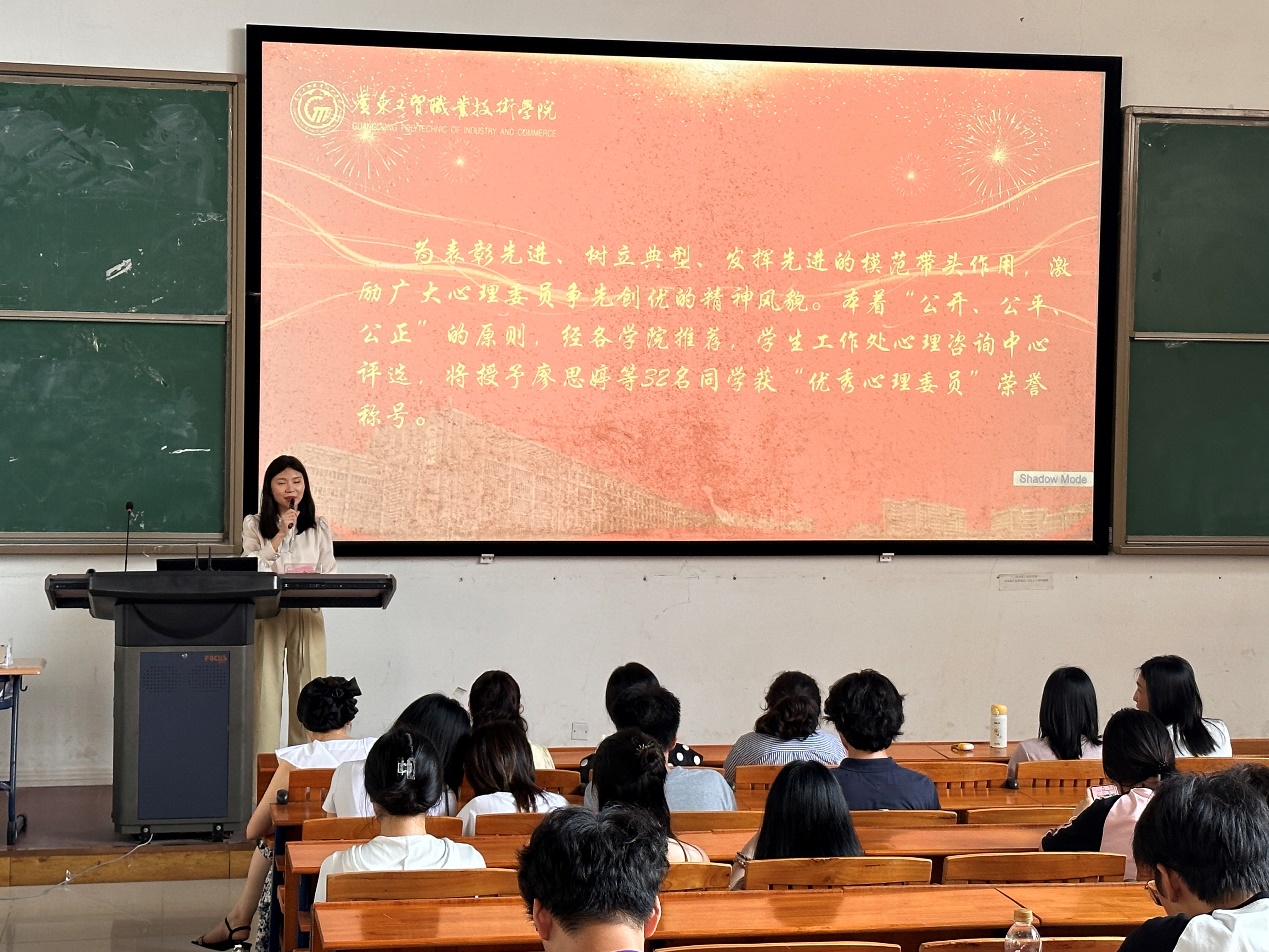 为进一步加强学校心理健康教育工作,同时鼓励学生积极参与心理健康活动,提高学生心理健康意识,调动心理委员增强危机意识,加强对班级同学心理状态的关注程度,6月20日下午2点10分,心理咨询中心在明德楼2-103开展2024年“5·25”大学生心理健康月系列活动及年度优秀心理委员表彰大会。此次活动由心理咨询中心龚伟志老师、刘敏老师、周明娜老师、周灿老师、刘晓瑜老师、周薰妮老师、应用外语学院孙文星老师、机电工程学院李享老师和90余位同学参与。