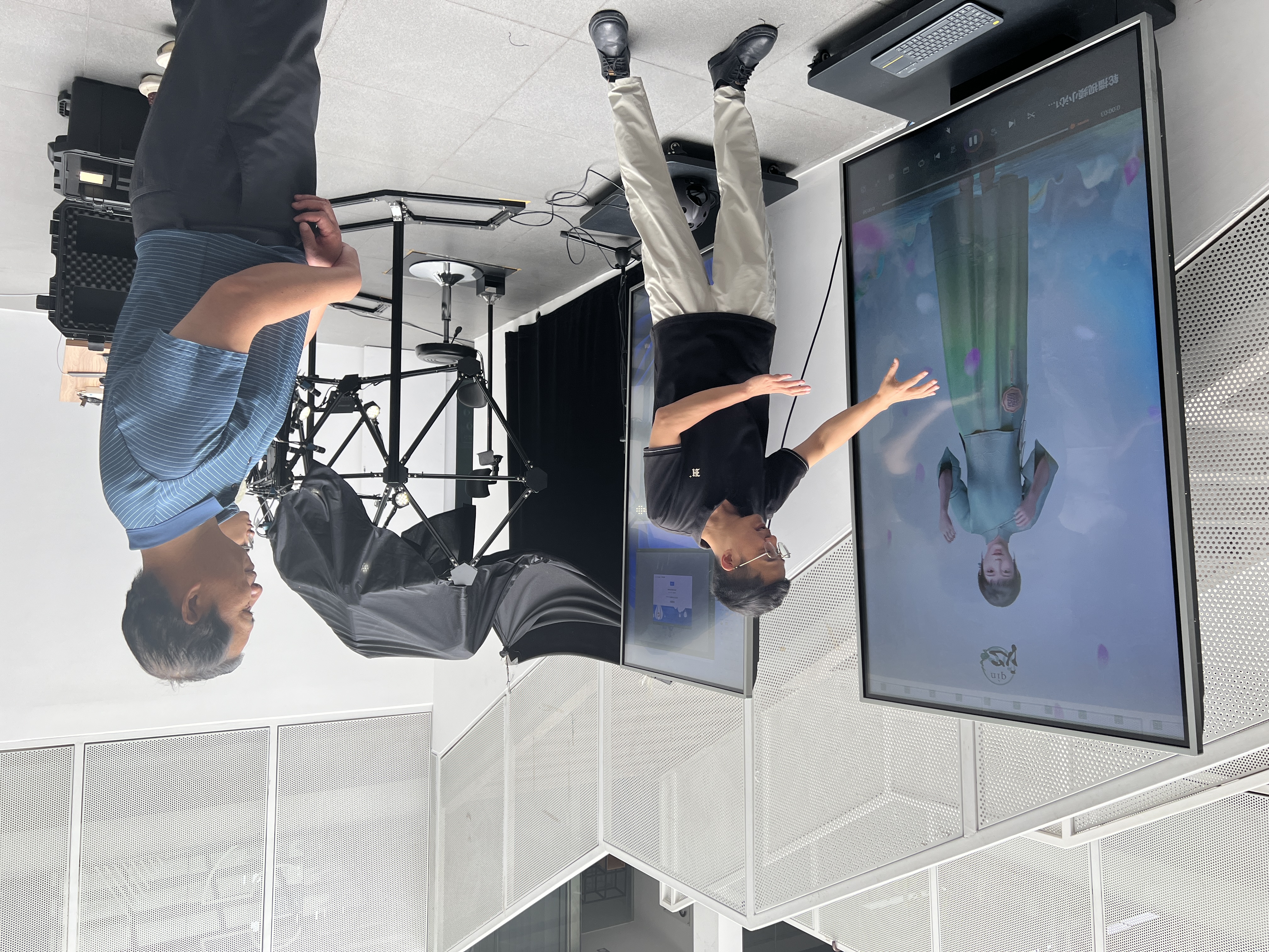 在凡拓数创数字孪生部门经张立梅的理带领下,一行先参观了集团办公场所、数字展厅,观摩虚拟数字人应用及动捕交互演示。