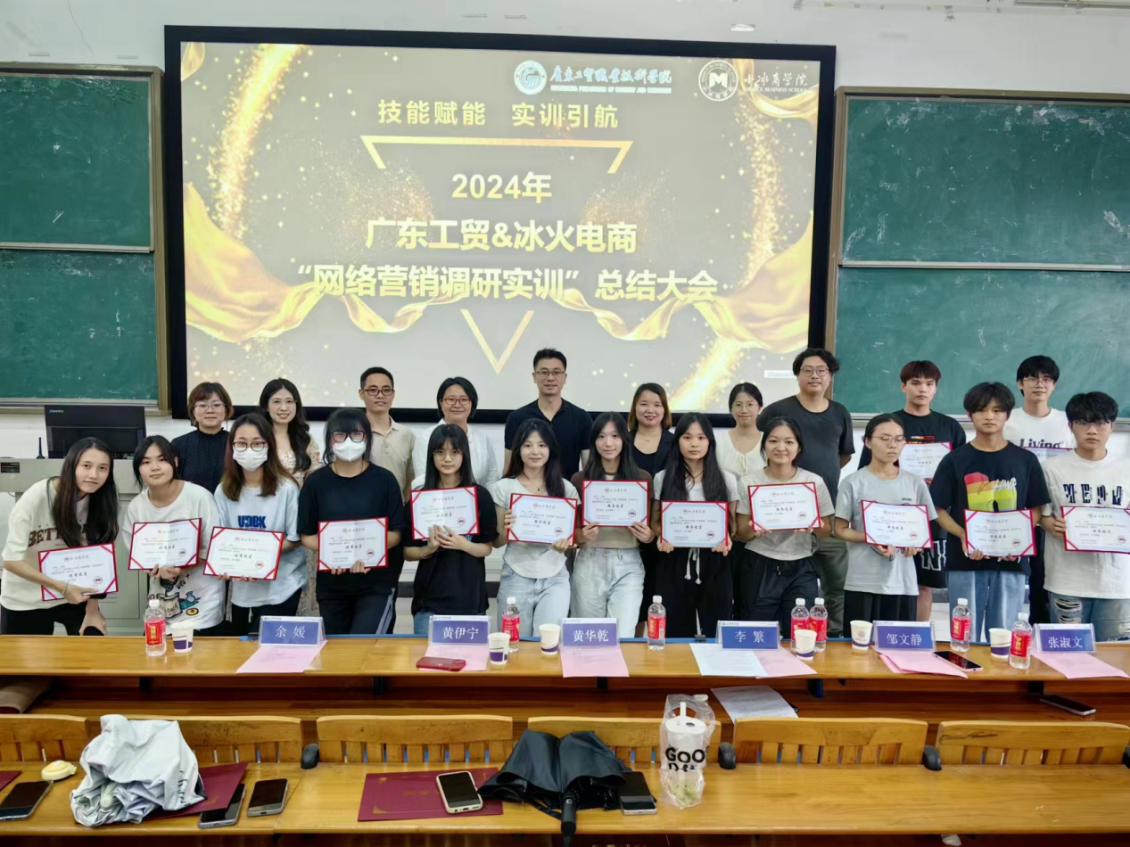 2024年6月20日下午,经贸学院隆重举行以“技能赋能 实训引航”为主题的网络调研实训总结大会。此次大会旨在总结实训经验,表彰优秀师生,同时搭建校企沟通桥梁,为提升人才培养质量注入新动力。出席本次大会的有经济贸易学院党总支书记李繁、市场营销专业带头人黄华乾、冰火电商人事总监邹文静、冰火电商项目经理欧阳志雄、冰火电商项目主管张淑文、骨干教师余媛、黄伊宁。大会由跨境数字营销系主任陈建兰主持。
