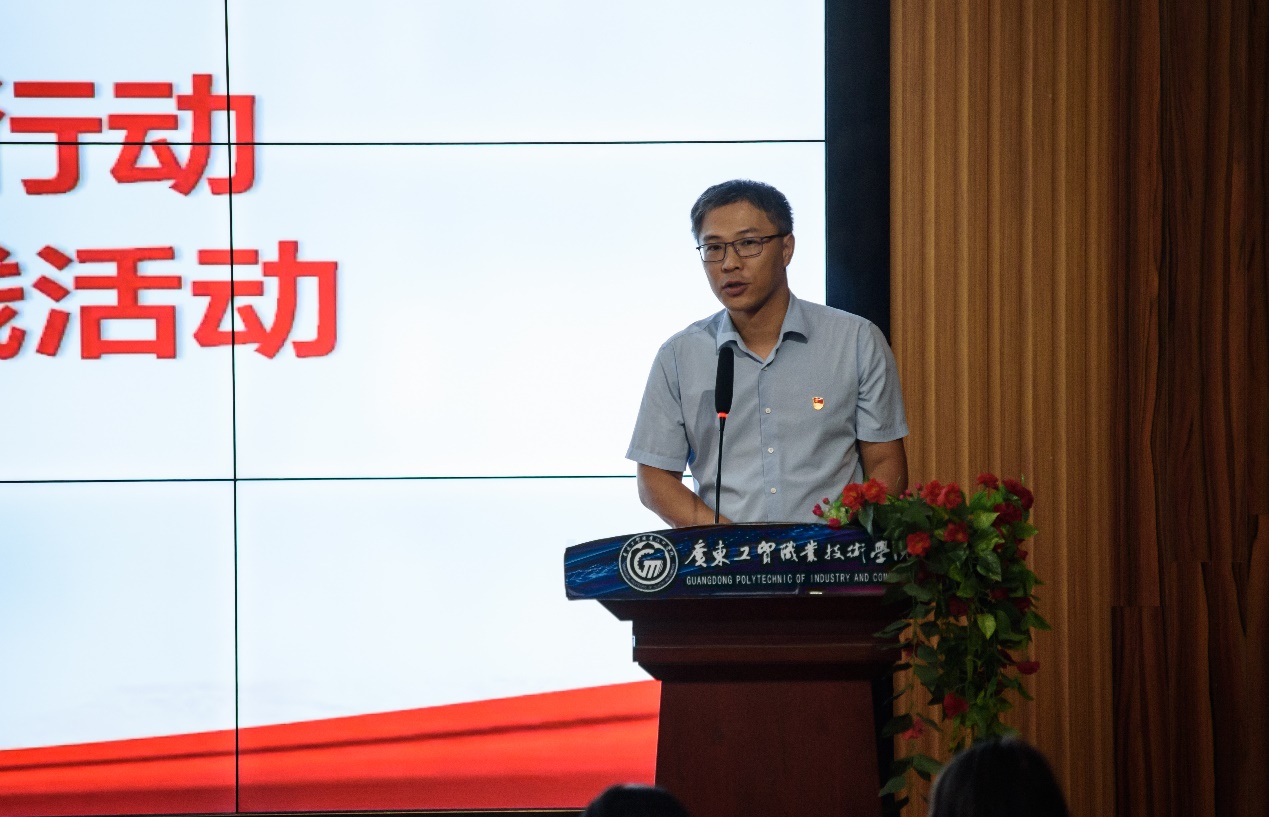 接着,党总支临时负责人叶宜同做动员讲话。叶宜同首先对此次参加“百千万工程”突击队行动以及暑期“三下乡”实践活动的全体师生表示了忠心的感谢,然后他强调了团队协作与团队安全的重要性,并希望全体同学能谨记工贸学子的身份,时刻以高要求严格要求自己,在活动中积极展现学校的风采,为艺教学院争光!为广东工贸添彩!