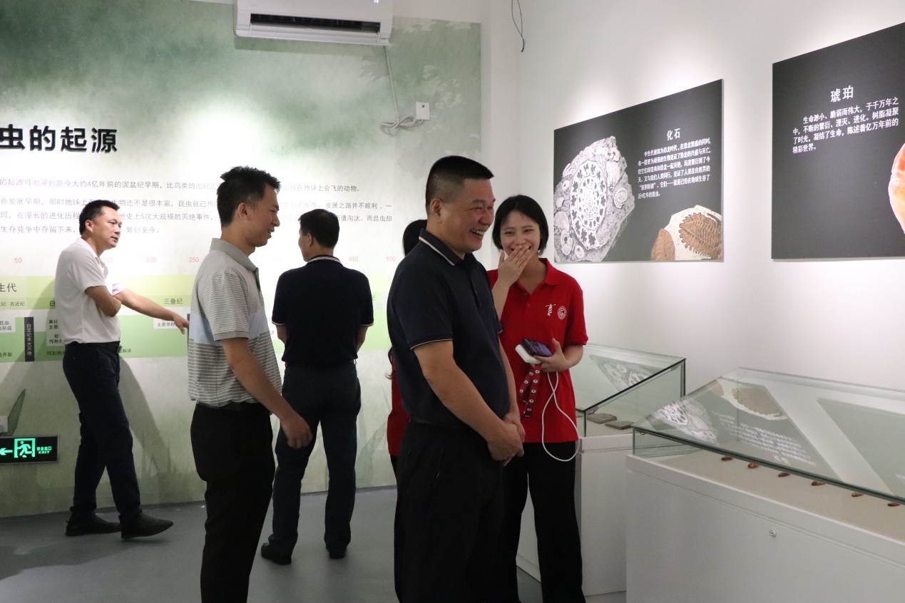 随后,政、校、企领导们来到蓝田瑶族乡小洞村昆虫馆,青翼队员认真讲解科普昆虫馆的昆虫墙与昆虫标本的价值与意义。