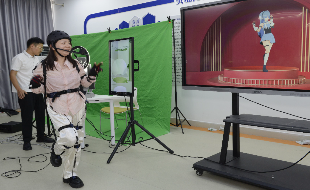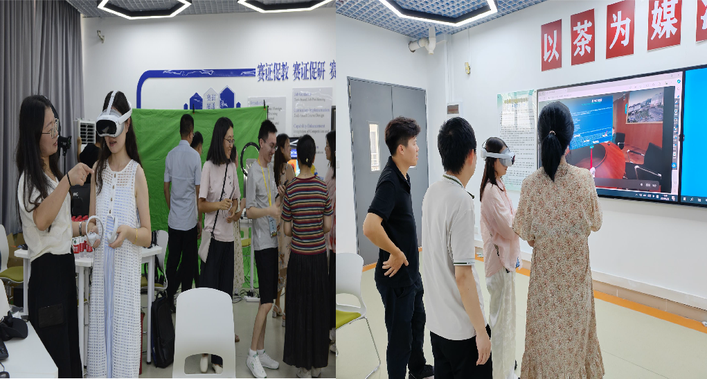 实操环节中,学员们不仅接触到了VR虚拟现实仿真、智能AI辅助教学、数字人与真人融合直播等前沿科技,还亲身体验了跨境电商直播的全过程。通过 PC、VR头盔等多端设备,全方位融入模拟的商务交流场景。实操现场气氛热烈,学员们纷纷表示,将把所学所得带回各自的课堂,用数智化的手段赋能外语教学,培养出更多具有创新精神和实践能力的高素质外语人才。