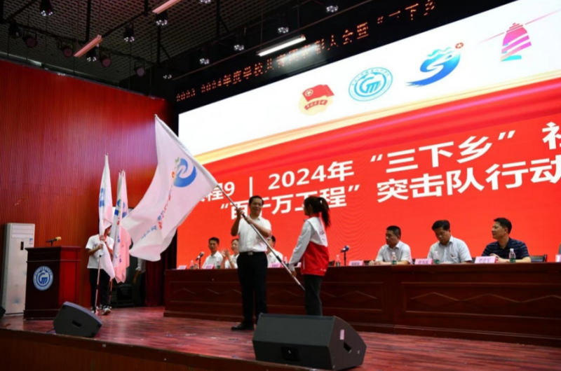7月3日,随着校领导将“梦想起航”社会实践服务队的旗帜庄重地授予服务队队长王嘉欣,一场充满激情与使命的征程正式开启。这面旗帜,不仅是荣誉的象征,更是学校对青年学生寄予厚望的见证。服务队队员们满怀信心与决心,踏上助力乡村产业升级、环境改善和文化建设的道路。
