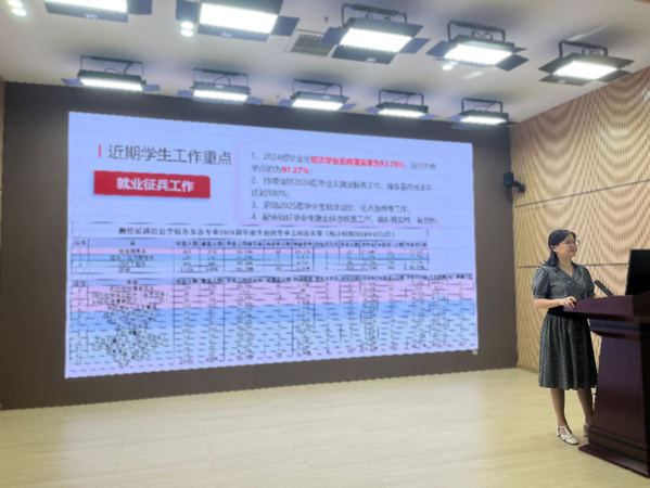 测绘学院党总支副书记李元则详细介绍了近期学生工作重点,包括就业征兵工作、迎新工作等,提出要抓好学生高质量就业,确保党的二十届三中全会精神和吴岩讲话精神在测绘学院落地生根,开花结果。