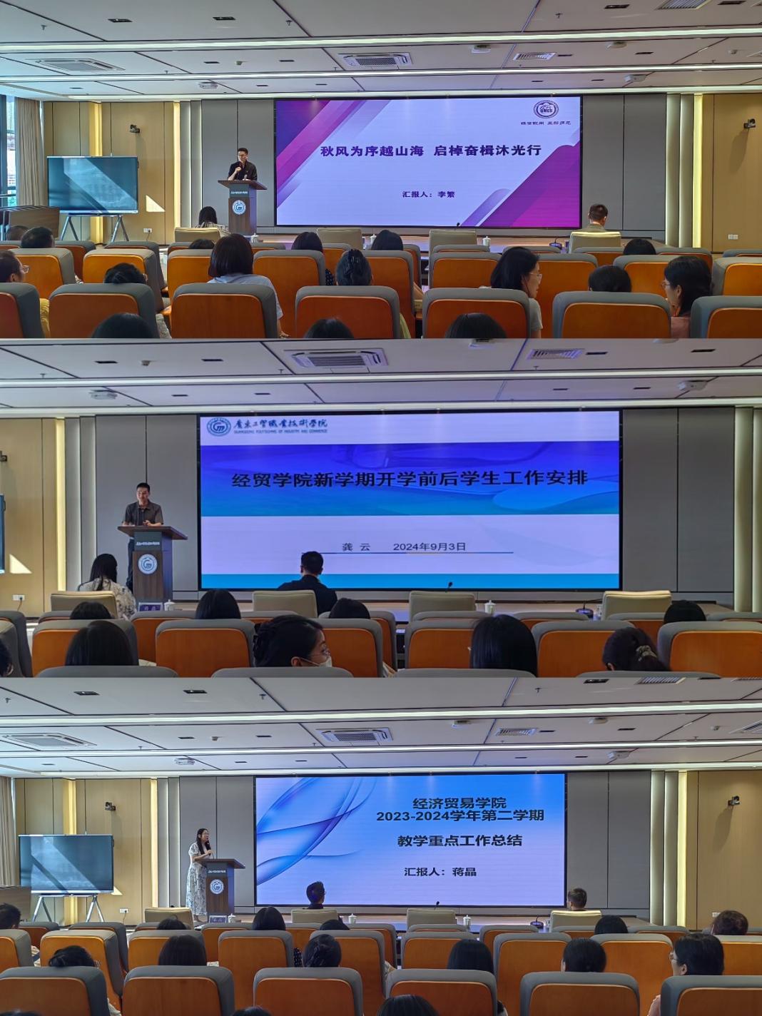 会上,经济贸易学院党总支纪检委员廖晓虹以案为鉴,组织开展党风廉政教育暨师德师风建设专题学习;各系主任(副主任)、专业带头人分别汇报了本系及所属专业情况及新学期工作计划;经贸学院班子围绕党建、主题教育、专业建设、教学、科研及社会服务、学生培养等方面对上学期及暑期工作进行总结并就新学期重点工作进行部署。