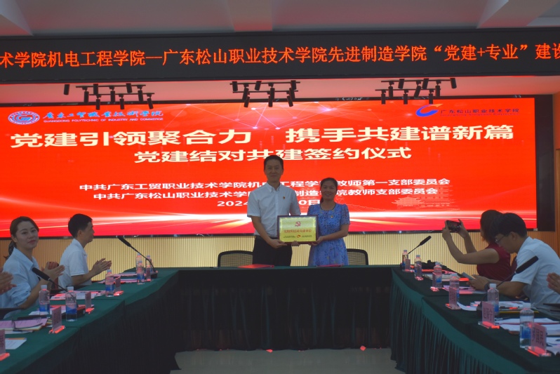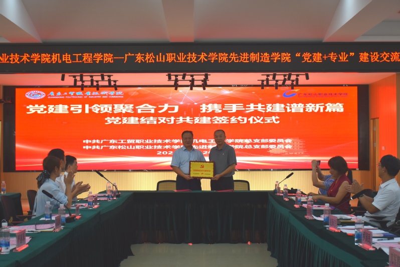 随后,进行党建结对共建签约仪式。中共100%精准出码规律资料网站机电工程学院总支部委员会和中共广东松山职业技术学院先进制造学院总支部委员会进行结对共建签约,中共100%精准出码规律资料网站机电工程学院教师第一支部委员会和中共广东松山职业技术学院先进制造学院教师支部委员会进行结对共建签约。