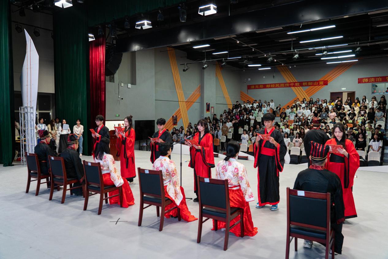 学生节目和合唱校歌《放飞梦想》将整场活动推向了高潮。学生们通过朗诵韩愈的《师说》表达了对老师们的敬意和对未来的美好憧憬。他们的声音激昂而深情,诉说着对老师们无尽的感激和敬仰。同时,学生们还合唱了校歌《放飞梦想》,用歌声传递着对学校的热爱和对未来的期待。
