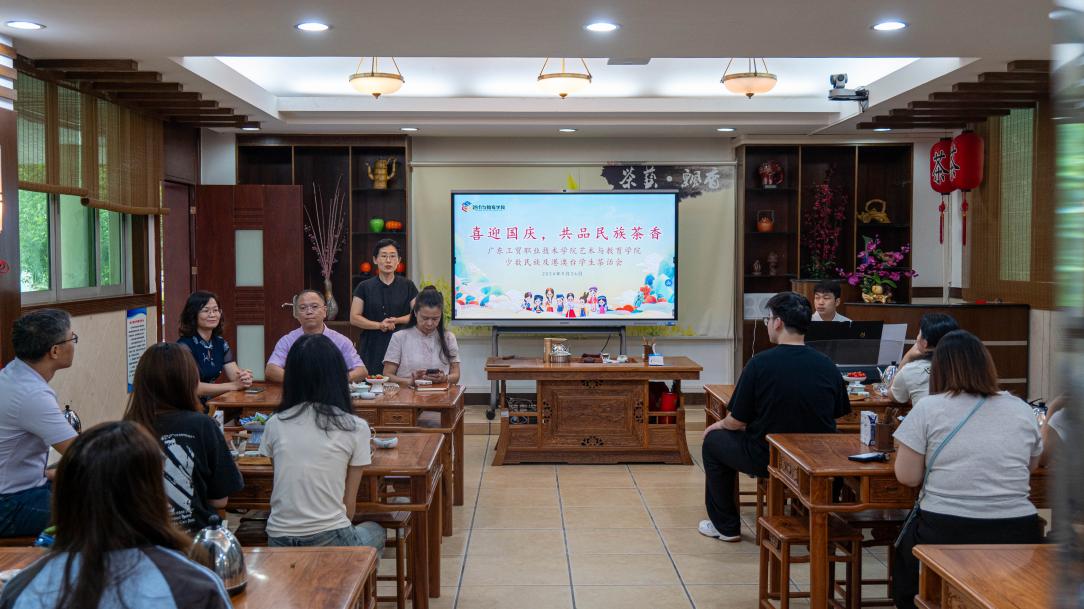 为进一步铸牢中华民族共同体意识,增进各民族学生之间的交流与交融,营造校园“中华民族一家亲”的浓厚氛围,根据学校下发《2024年“民族团结进步”宣传教育月活动实施方案》要求926日下午艺术与教育学院在茶艺室举办“喜迎国庆 共品民族茶香”少数民族及港澳台学生茶话会活动。艺术与教育学院临时负责人张幼晖、院党总支副书记叶宜同教师党支部书记区翠梅学工办主任谭武20余名少数民族及港澳台学生代表参加了茶话会,茶话会由辅导员闫艳主持。