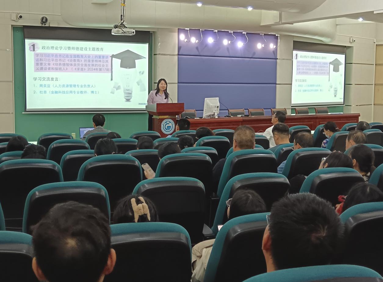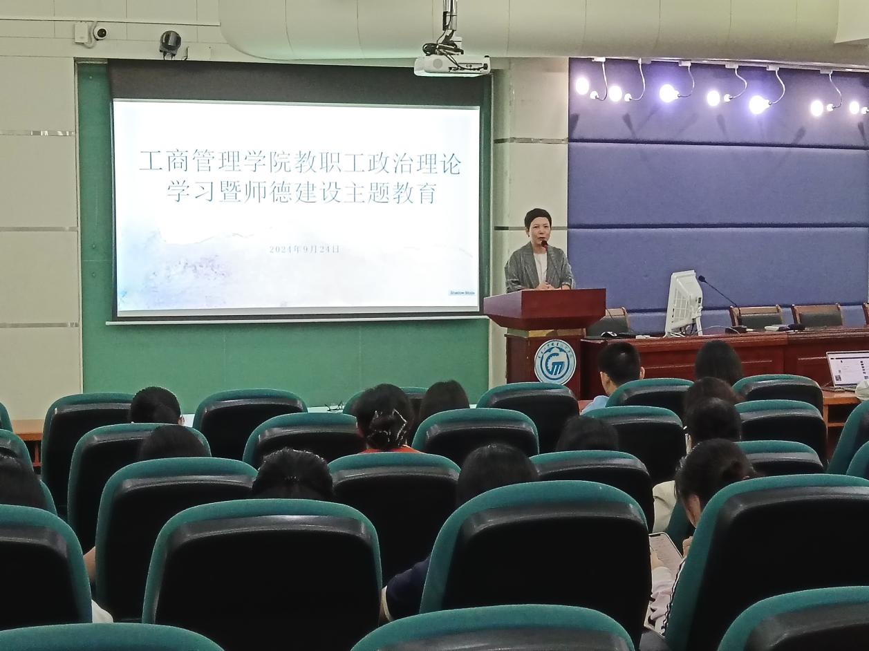 教育是强国建设、民族复兴之基,教师是立教之本、兴教之源。为进一步弘扬教育家精神,打造师德高尚、业务精湛、结构合理、充满活力的高素质专业化教师队伍,9月24日下午,工商管理学院在天河校区西区报告厅举行教职工政治理论学习暨师德建设主题教育大会。会议由工商管理学院党总支书记周清莲主持,工商学院全体教职工参加。