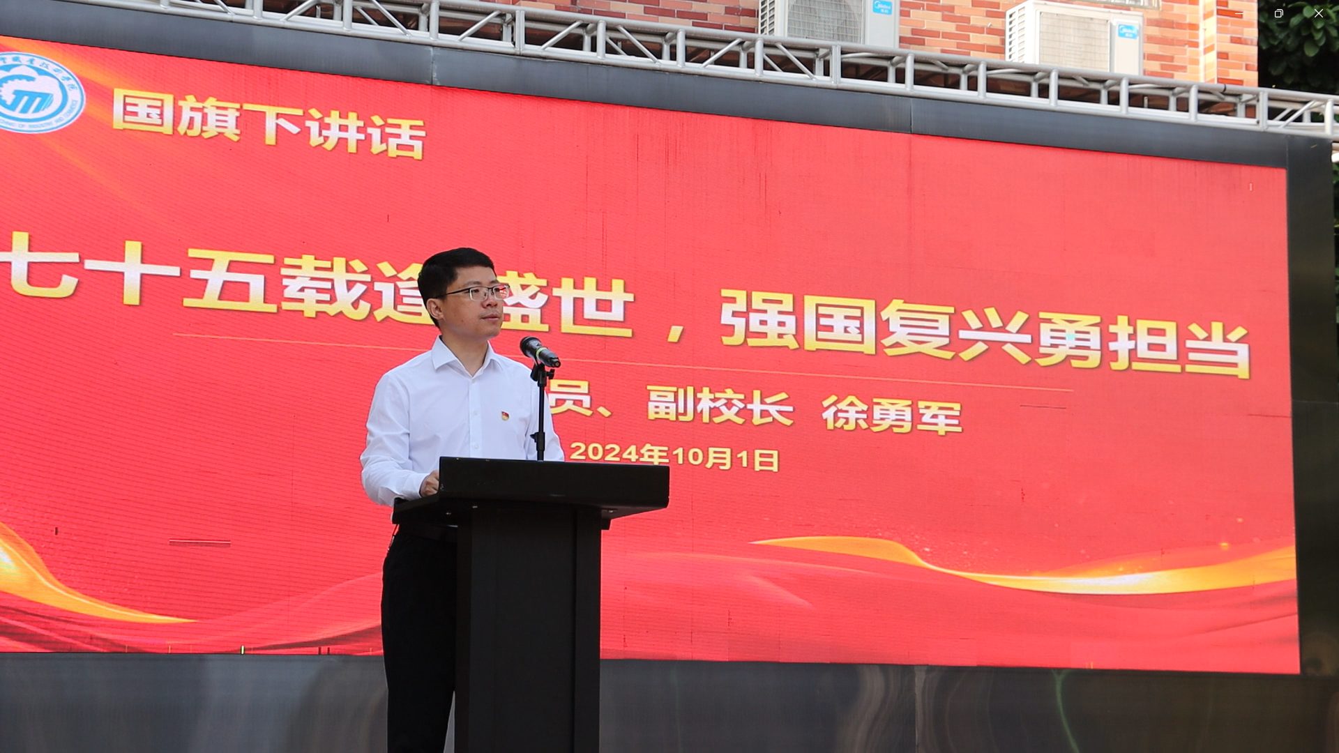 学校党委委员、副校长徐勇军发表讲话(荔湾校区升旗现场)