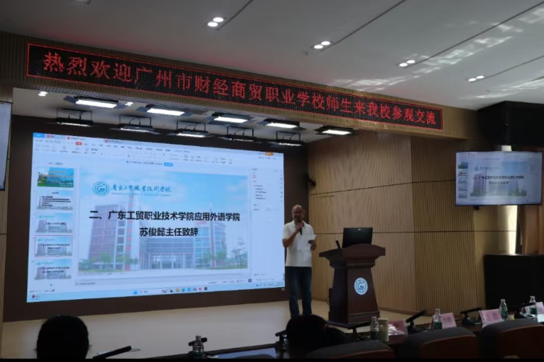 9月27日,应用外语学院与广州市财经商贸职业在白云校区博学楼报告厅举办了交流座谈会。应用外语学院英语系主任苏俊懿、广州市财经商贸职业学校涉外贸易系主任江韵、应用外语学院商务日语专业带头人雷莹、王艳、陈歆馨、广州市财经商贸职业学校商务日语专业带头人易娟娟、刘可、孙小燕,以及广州市财经商贸职业学校学生参加本次现场交流。本次座谈会由苏俊懿主持。