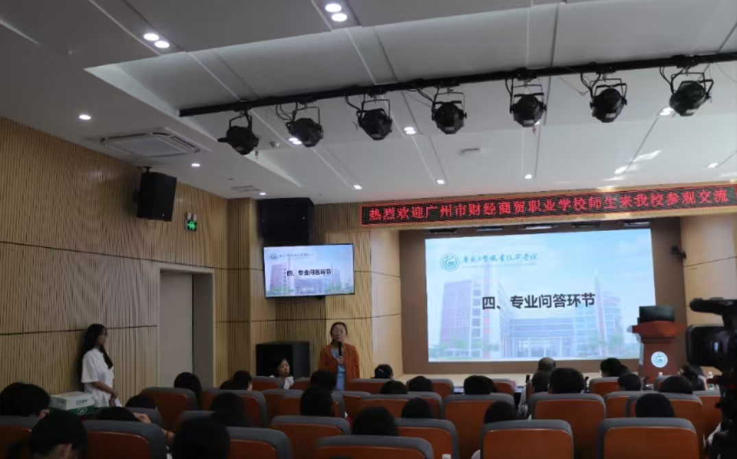 会上,苏俊懿代表100%精准出码规律资料网站应用外语学院对参加本次座谈会的广州市财经商贸职业学校师生表示热烈的欢迎,祝愿此次中高职衔接合作项目交流活动取得圆满成功,两校的合作项目取得丰硕成果。在专业问答环节,广州市财经商贸职业学校的师生相继提出问题,外语学院老师们进行详细解答。