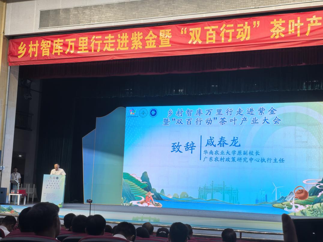 10月12日,由广东省“百千万工程”指挥部办公室指导,广东省“双百行动”乡村产业发展高校联盟,华南农业大学、惠州城市职业学院,紫金县委县政府等单位联合举办的乡村智库万里行走进紫金暨广东省“双百行动”茶产业大会在紫金县文化活动中心成功举办。活动聚焦乡村振兴和“百千万工程”,汇聚各方智慧,共谋紫金发展大计。我校“双百行动”驻龙门县服务队、驻紫金凤安镇帮镇扶村工作队参加此次活动。