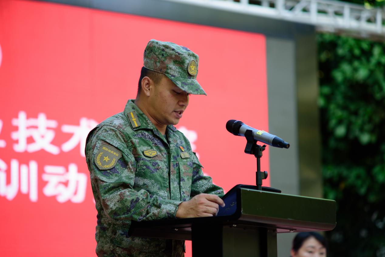 军训团团长在讲话中指出,军训不仅是对身体的锻炼,更是对意志、团队精神和爱国情怀的塑造,希望同学们发扬吃苦耐劳的精神,在应对困难中、在摸爬滚打中,磨砺铁的体魄、钢的意志,团结友爱、互帮互助、齐心协力,学习军事操练的基本技能,展现青春风采。同时,要求全体教官担起承训的光荣职责,严格遵守要求,树立良好形象,向同学们展现军人风采,确保军训各环节安全有序落实。