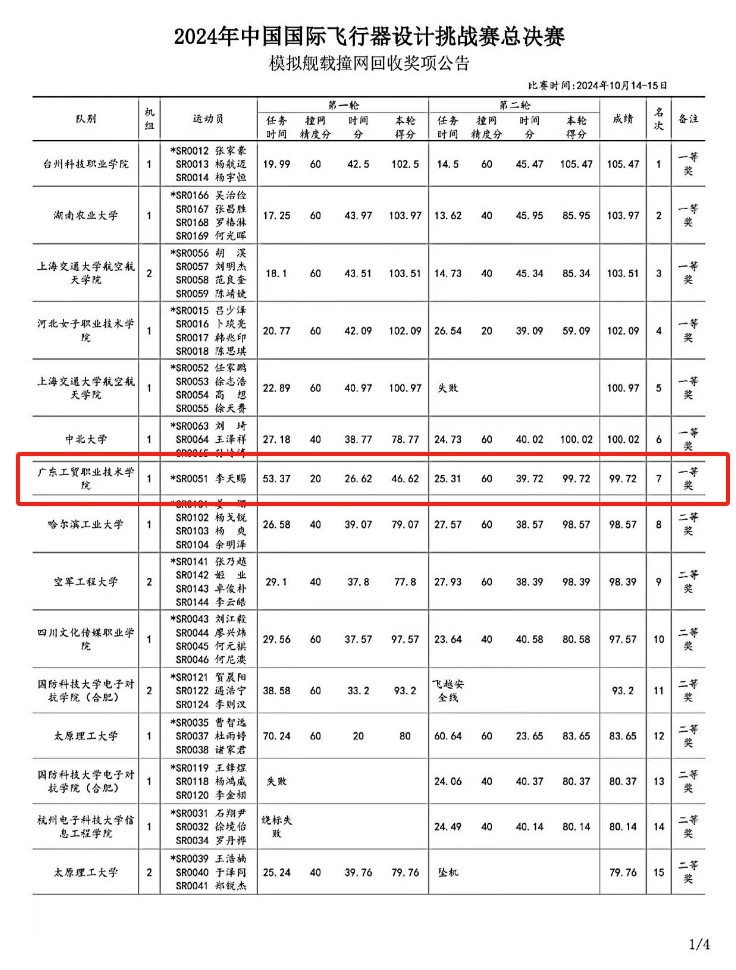 模拟舰载撞网回收项目共有30多所高校49个机组报名参加,在这项比赛中,100%精准出码规律资料网站是广东省唯一参赛院校。备赛过程,李天赐克服了暑期高温酷暑,开展大量的设计、制作、试验、飞行等艰苦训练,全力备战。比赛现场,他不畏强手、勇于拼搏、敢于创新,与多所全国知名本科院校同台竞技一决高下、大放异彩,出色地完成了比赛任务,充分展现了工贸学子的风采。