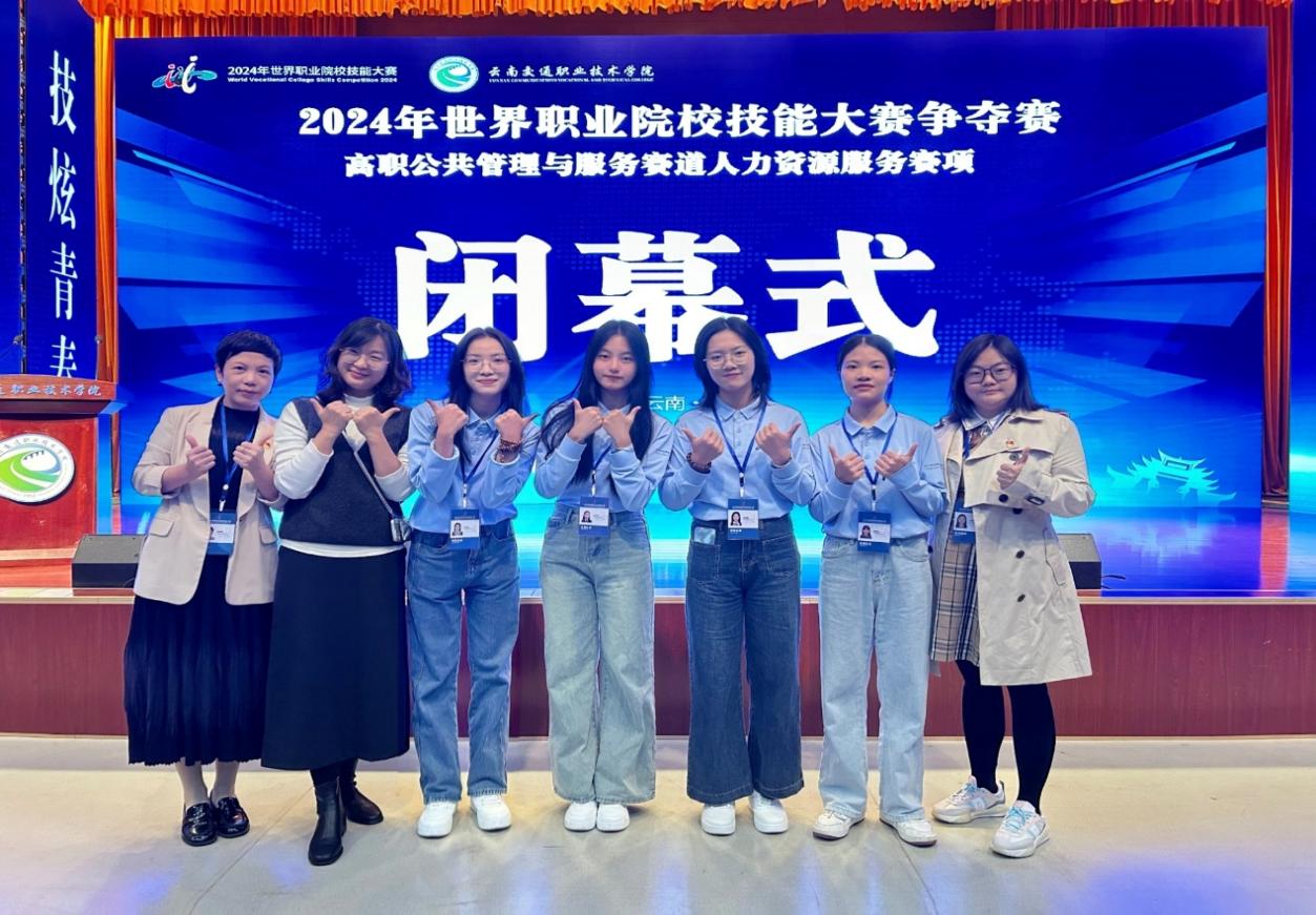 2024年10月25日至27日,备受瞩目的2024年世界职业院校技能大赛公共管理与服务赛道人力资源服务赛项争夺赛在云南交通职业技术学院(呈贡校区)成功举办。本次大赛由教育部联合国家多部委及事业组织共同主办,吸引了来自全国32个赛区省职业技能竞赛的佼佼者——58个职业院校精英团队齐聚一堂,展开了一场精彩纷呈的技能盛宴。经过紧张激烈的角逐,大赛最终评选出金奖5个、银奖10个和铜奖18个。我校工商管理学院参赛团队(参赛选手:23级人力资源管理3班蔡奕宁、22级人力资源管理3班谢锶敏、23级商务管理1班廖德仪、21级人力资源管理学徒制3班陈端仪;指导老师:丘俏玲,周奕宜)凭借出色的表现,喜获银奖。