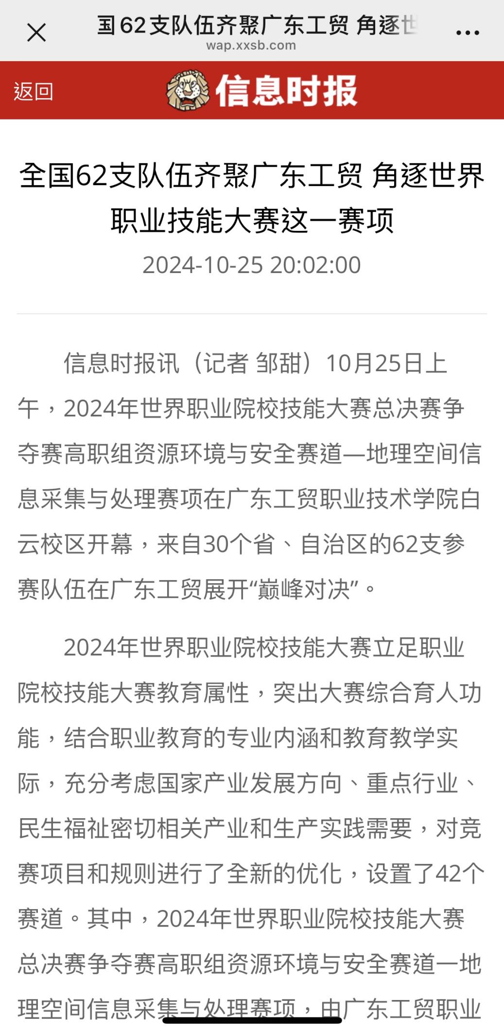 2.光明网:全国62支队伍云集广东工贸,展开地理空间信息采集与处理赛项巅峰对决!