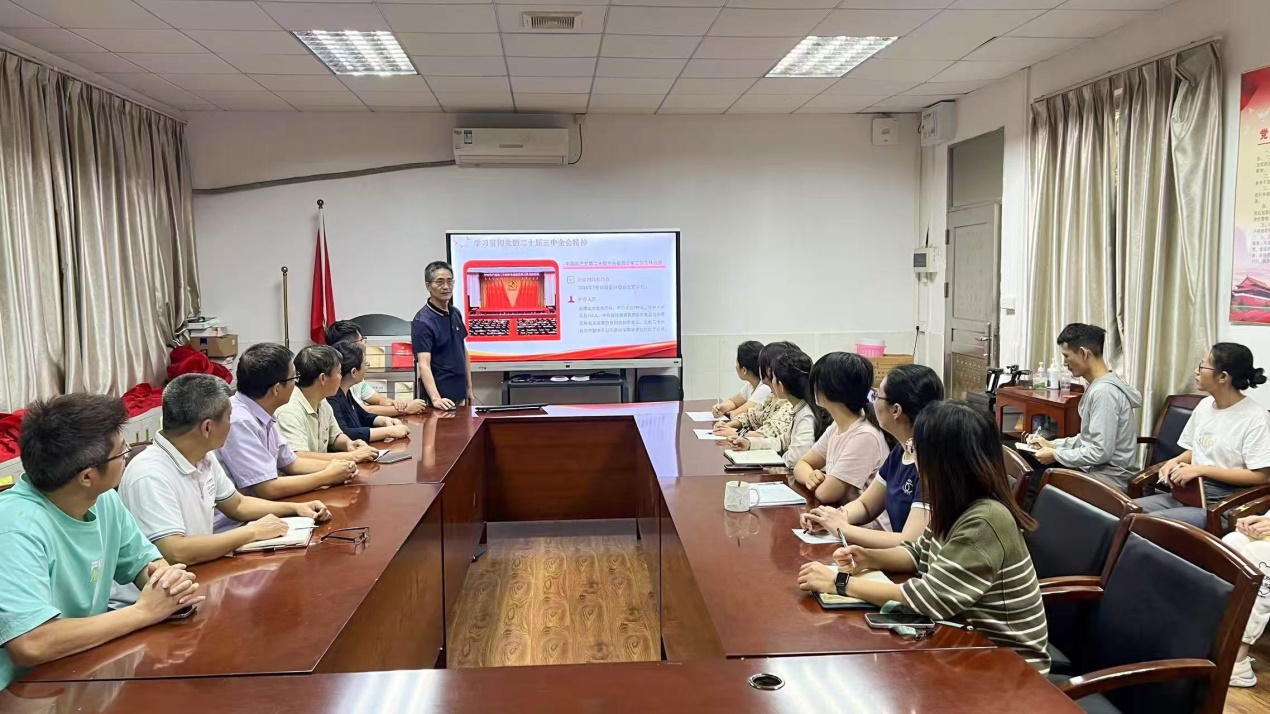 另外,余棉水还面向计算机学院部分党员教师做了党的二十届三中全会精神的宣讲。