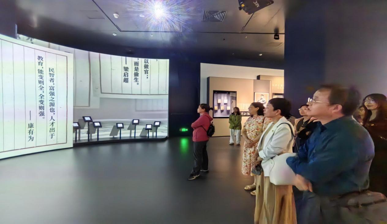 活动的第二站是广东文学馆。驻足馆内,颔首凝望新兴技术、千年文脉在此交相辉映,与鲁迅、康有为、梁启超等人文英杰共赴一场延绵轮转的文化之旅。在数字智能的加持下,饱经岁月洗练的字句诗词焕发出了新的生机,同志们在广东近代文学展厅“铁火新生”中通过沉浸式体悟,切身体会到了文人风骨与革命信仰的深刻内涵,更进一步深化了对于红色文化的强烈自豪感。
