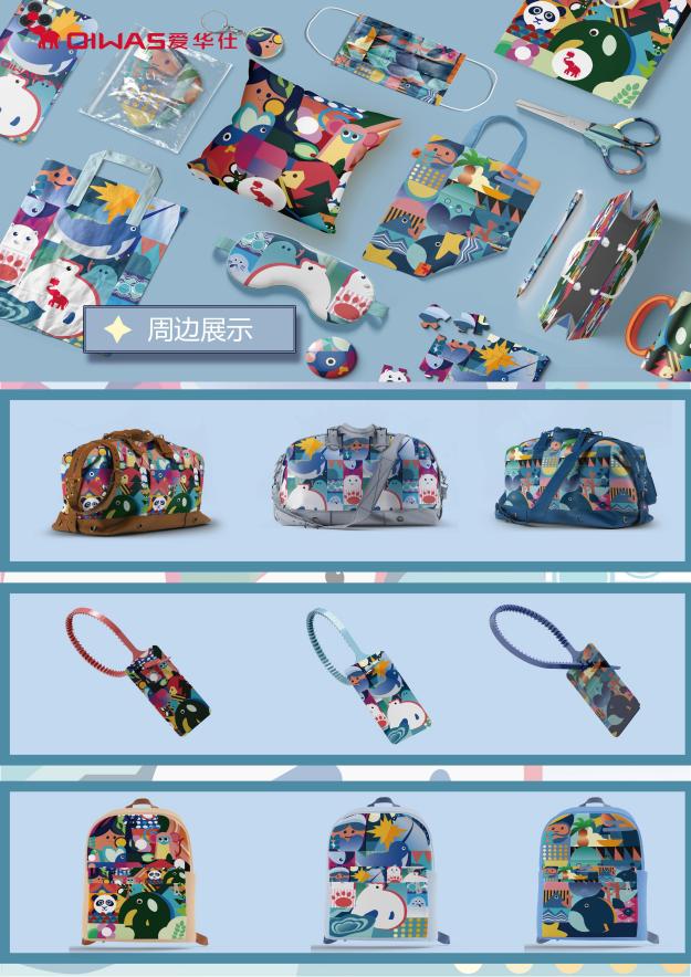 获奖作品《爱华仕箱体图案印花设计——“万物生·守护箱伴"》
