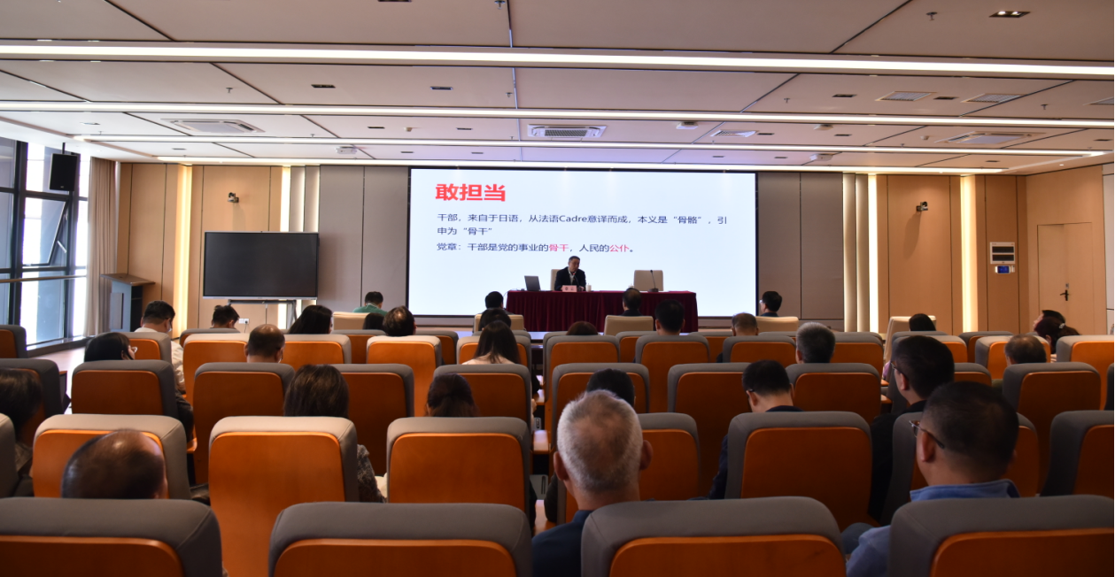 章云以《争做新时代的好干部》为题作辅导报告。他主要从“敢担当”“善谋划”“重落实”“多奉献”等四个方面展开,向大家深入论述了如何争做新时代的好干部。他提出,“敢担当”不是简单的口号,而是要通过制定明确、符合实际的目标,以身先士卒、敢做敢为、不屈不挠的责任感来承担岗位职责;“善谋划”要求干部在岗位上要学会找准差距、发现优势,整合各类资源,做好任务分解和行动计划;“重落实”意味着作为干部必须掌握用人艺术,积极营造人员之间分工明确、相互配合的和谐氛围,以奖惩分明的得力措施,帮助学校解决好发展中的问题;“多奉献”则要求干部要廉政用权、勤政为民,多做实事、多做好事,完成好服务工作。