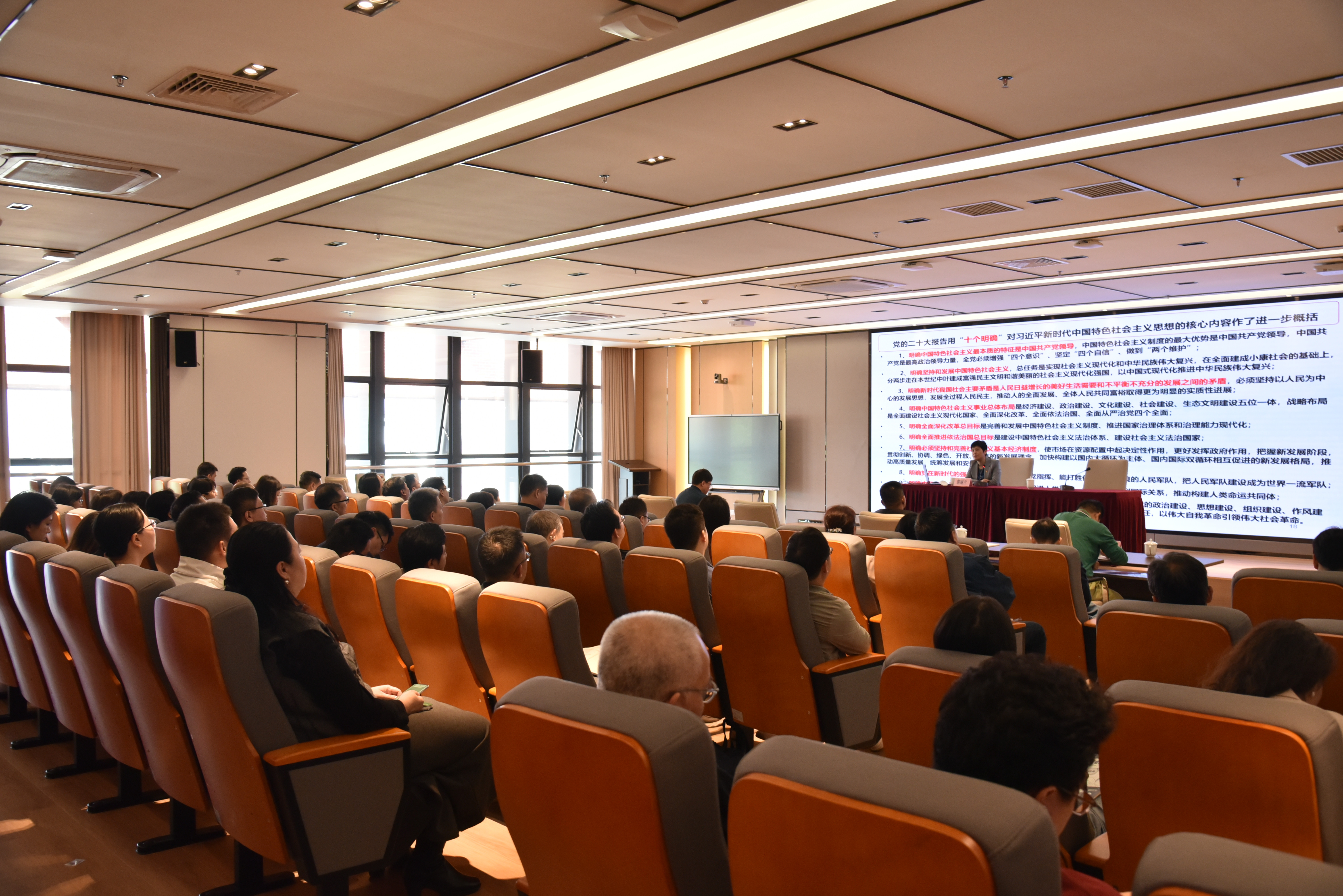 郭丽兰以《以进一步全面深化改革推进中国式现代化——深入学习贯彻党的二十届三中全会精神》为题作辅导报告。她从“深刻领会进一步全面深化改革的重大意义和总体要求”“全面准确理解把握进一步全面深化改革的重大举措”两个方面,用扎实深厚的理论涵养、清晰详实的调研数据,结合各类实践案例进行了精彩授课。她带领大家回顾了党的历届三中全会召开的背景和改革的主要内容,深入剖析了党的二十届三中全会通过的《关于进一步全面深化改革 推进中国式现代化的决定》,结合具体事例分析了“注重发挥经济体制改革牵引作用、注重构建支持全面创新体制机制、注重全面改革、注重统筹发展和安全、注重加强党对改革的领导”等全面深化改革的重大举措。她通过对传统产业、战略新兴产业和未来产业等的发展态势分析,生动阐述了 “高质量发展”“中国式现代化”“新质生产力”的丰富内涵。