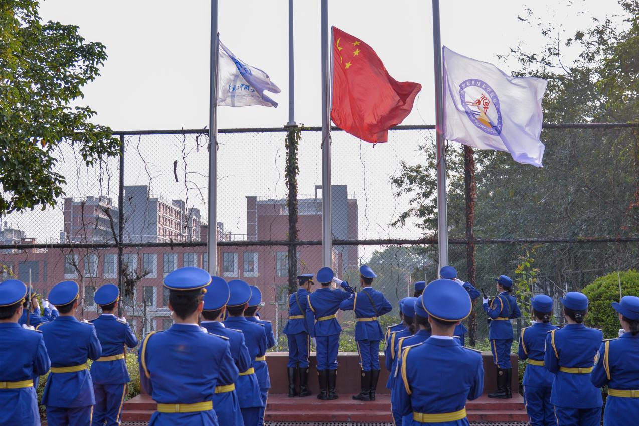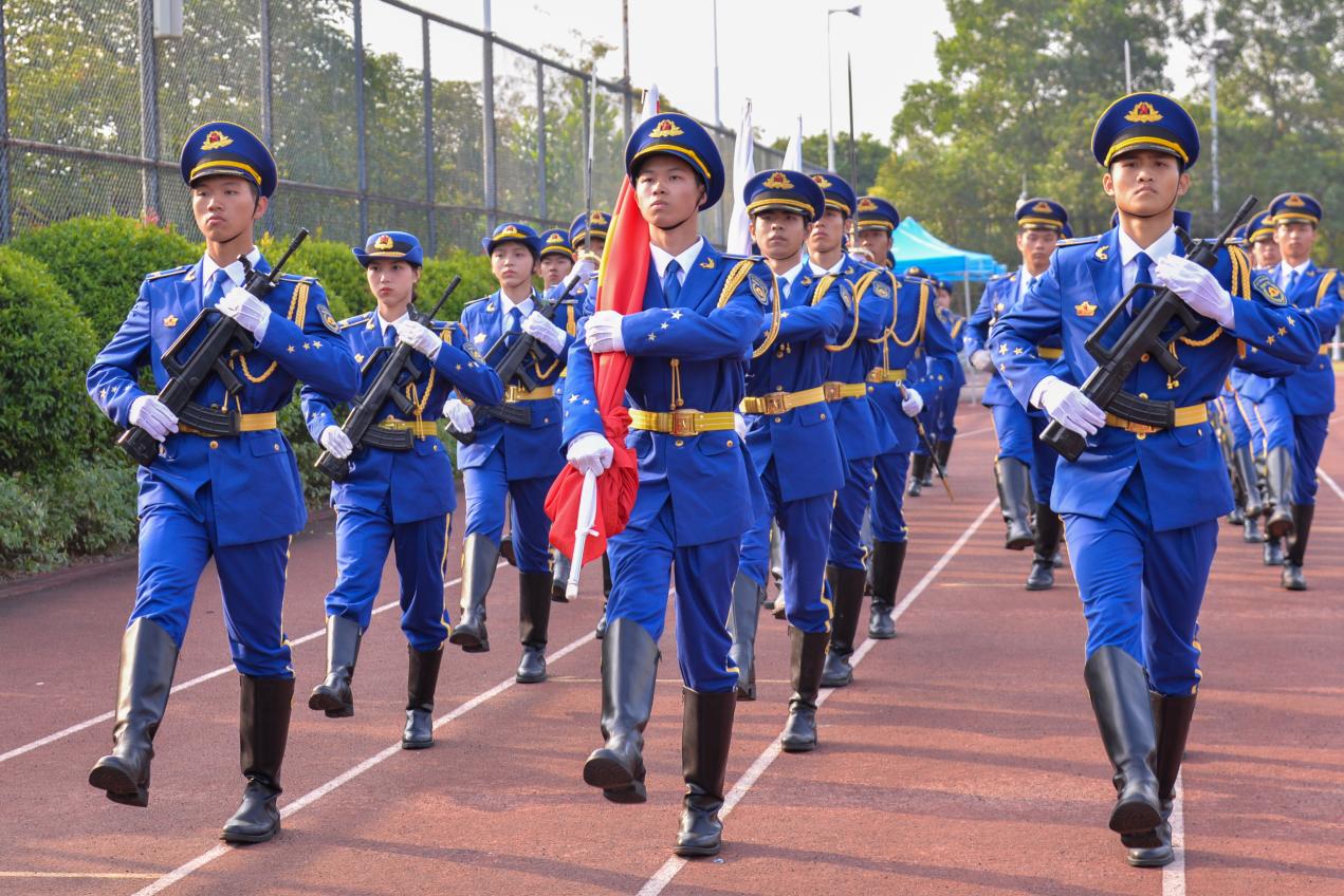 所有方阵入场后,进行了庄严的升旗仪式。全体师生列队肃立,注视着五星红旗冉冉升起,齐声唱响《中华人民共和国国歌》。