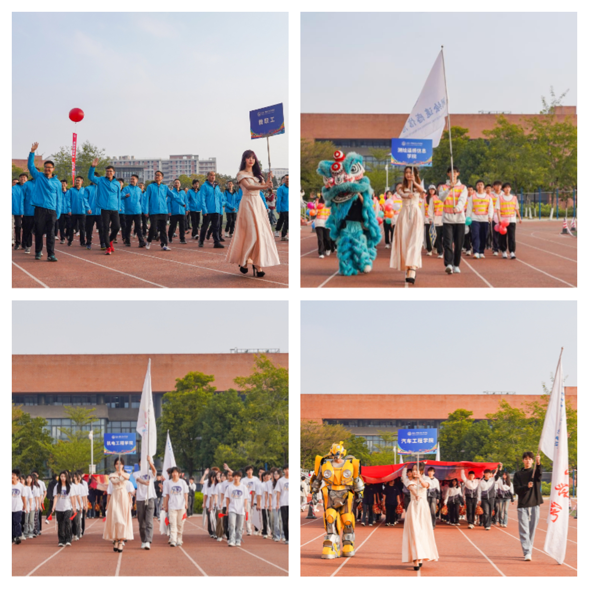 运动会在国旗护卫队整齐、豪迈的步伐中拉开了帷幕。护卫队成员们英姿飒爽、步履铿锵,护送庄严的五星红旗,昂首阔步迈向主席台。在国旗方阵、校旗方阵带领下,运动员方阵洋溢着饱满的热情、昂扬的斗志依次入场。学校教工方阵、测绘遥感信息学院方阵、机电工程学院方阵、汽车工程学院方阵、工商管理学院方阵、经济贸易学院方阵、应用外语学院方队、计算机与信息工程学院方队、艺术教育学院方队创意满满、“活”力全开,他们融合传统与现代元素,精心设计了服装和道具,以精彩纷呈的表演展示着工贸独有的风采与各学院鲜明的特色。