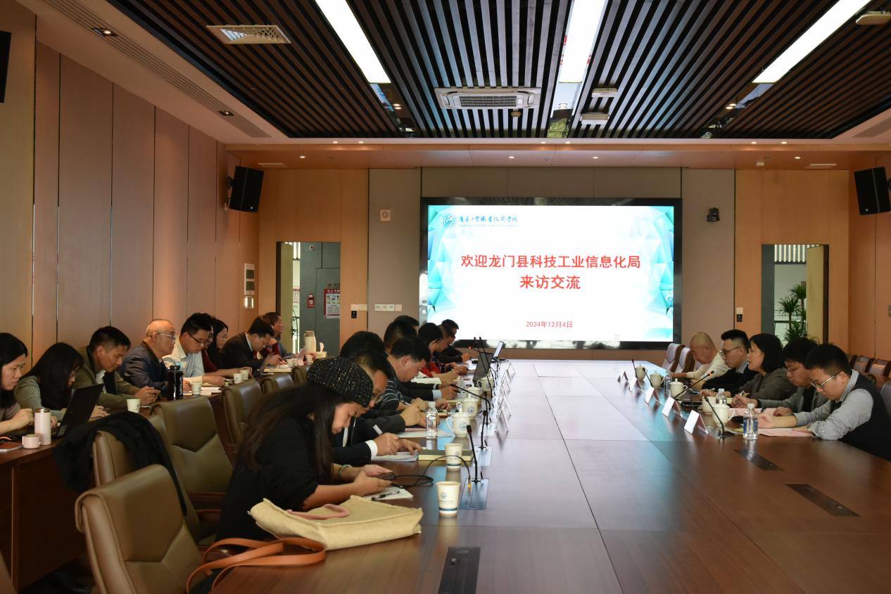 12月4日,龙门县科技工业和信息化局副局长谭兰花一行来校参观交流,并召开龙门县创新基地建设、“双百行动”和驻镇帮镇扶村工作专题交流推进会。学校党委委员、副校长唐毓秋,驻龙门县工作队副队长黄世仿,驻凤安镇帮镇扶村工作队员、驻村第一书记罗福周参加会议并汇报工作开展情况,有关部门及二级学院负责人等参加会议。