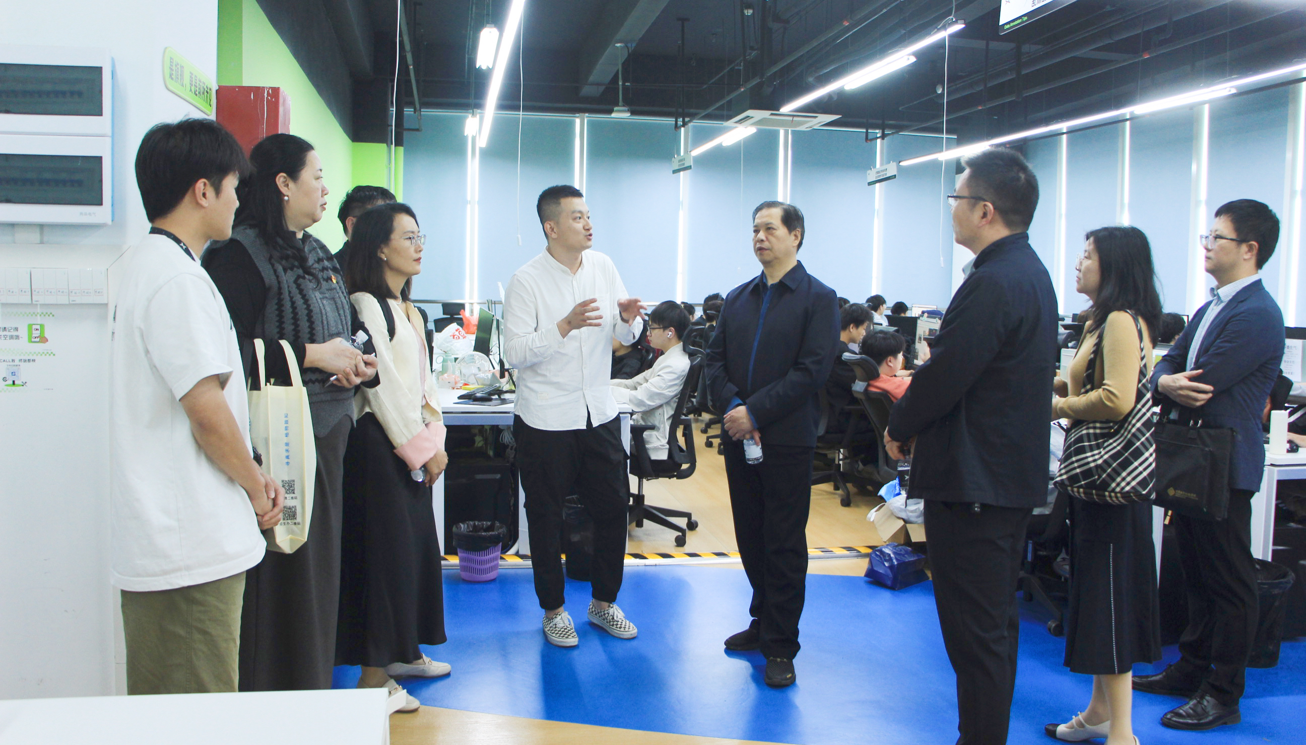 在企业相关负责人带领下,何汉武一行走访参观了小鹏汽车广州制造基地数据标注岗位的工作场景,详细了解实习生的岗位内容、技术实践和未来晋升渠道,并亲切慰问了学生在公司的实习情况。