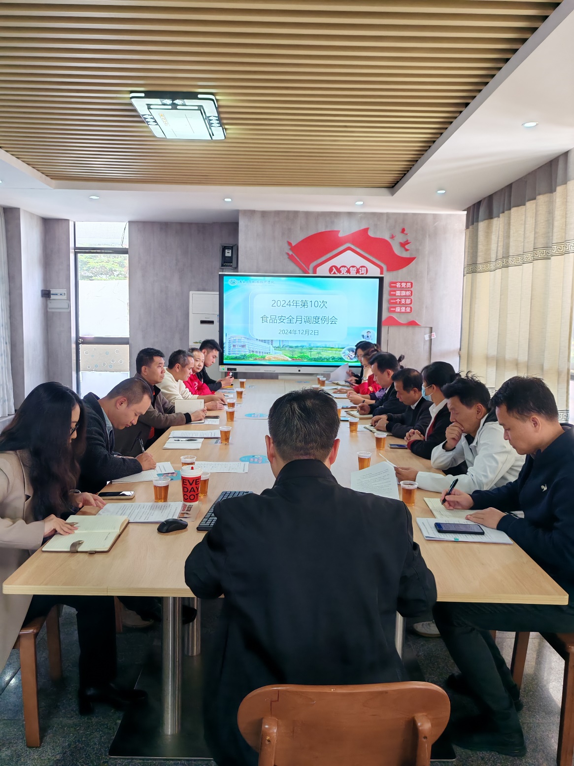 会上,参会人员共同学习了《广东省教育厅办公室转发教育部办公厅关于纵深推进专项整治迅速开展校园餐管理监督关键环节自查工作的通知》、《关于强化集中用餐食堂承包经营食品安全管理工作的通知》、《教育部办公厅关于印发<中小学校园食品安全和膳食经费管理共工作指引>的通知》(教体艺厅函〔2024〕39号)等文件精神,传达了“关于高校食堂食品安全监督检查情况通报及食品安全知识宣贯会”会议精神,学习了《中小学校园食品安全和膳食经费管理共工作指引》和《食品安全风险管控清单(集中用餐单位食堂)》有关内容,提高认识总结经验,加强相关工作。