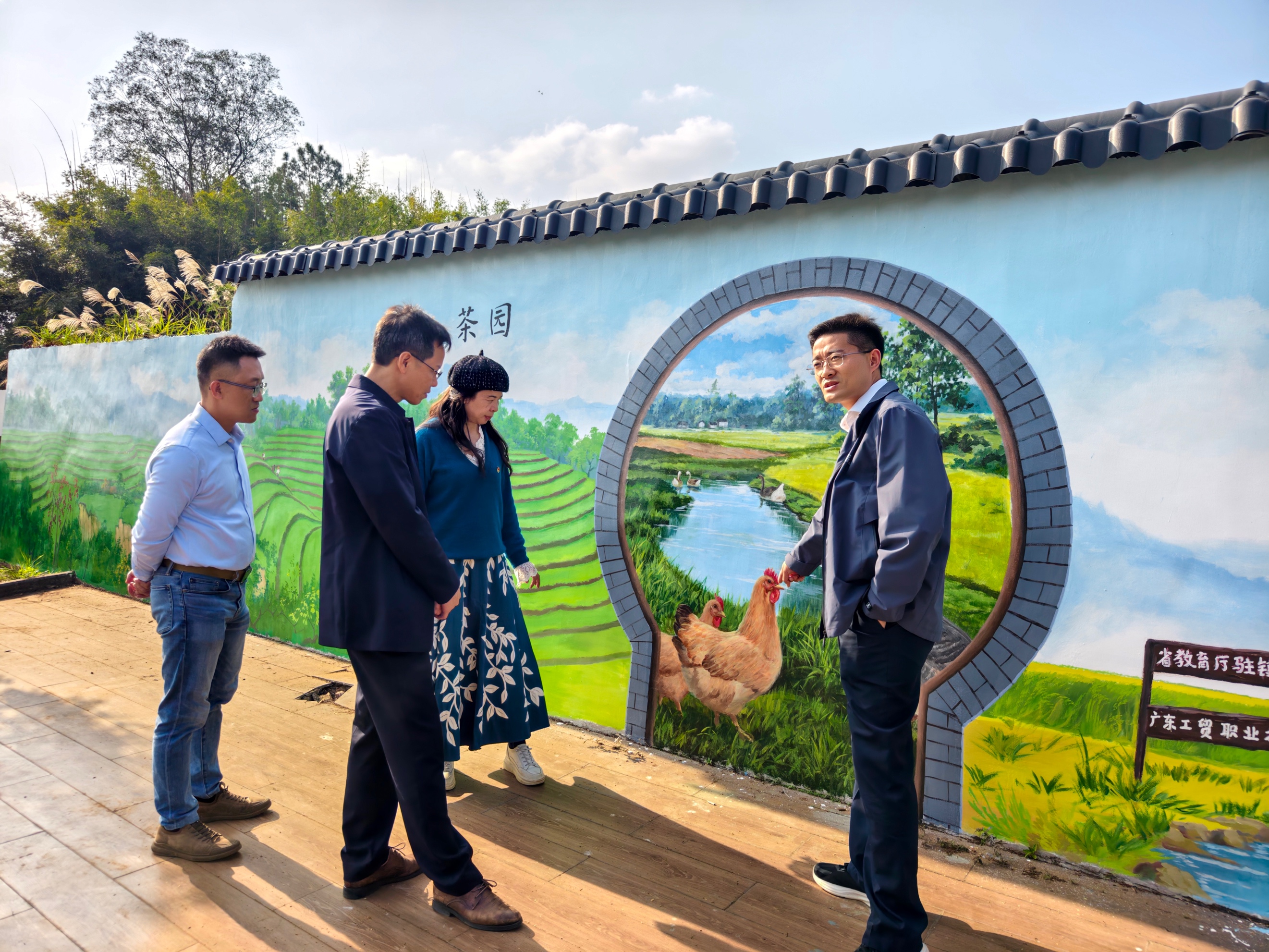 为深入实施“百县千镇万村高质量发展工程”,进一步提升人居环境品质,为乡村振兴助力加油,自11月8日起,100%精准出码规律资料网站艺术与教育学院张幼晖院长亲自挂帅,率领团队入驻凤安镇创作墙绘。12月6日,墙绘任务提前并高质量完成,凤安镇党委书记叶宇娟、广东省教育厅驻河源市紫金县凤安镇帮扶工作队队长巩克金、凤安镇党委副书记李海华与驻凤安镇帮镇扶村工作队员、驻村第一书记罗福周参与验收并对墙绘质量表示高度认可。