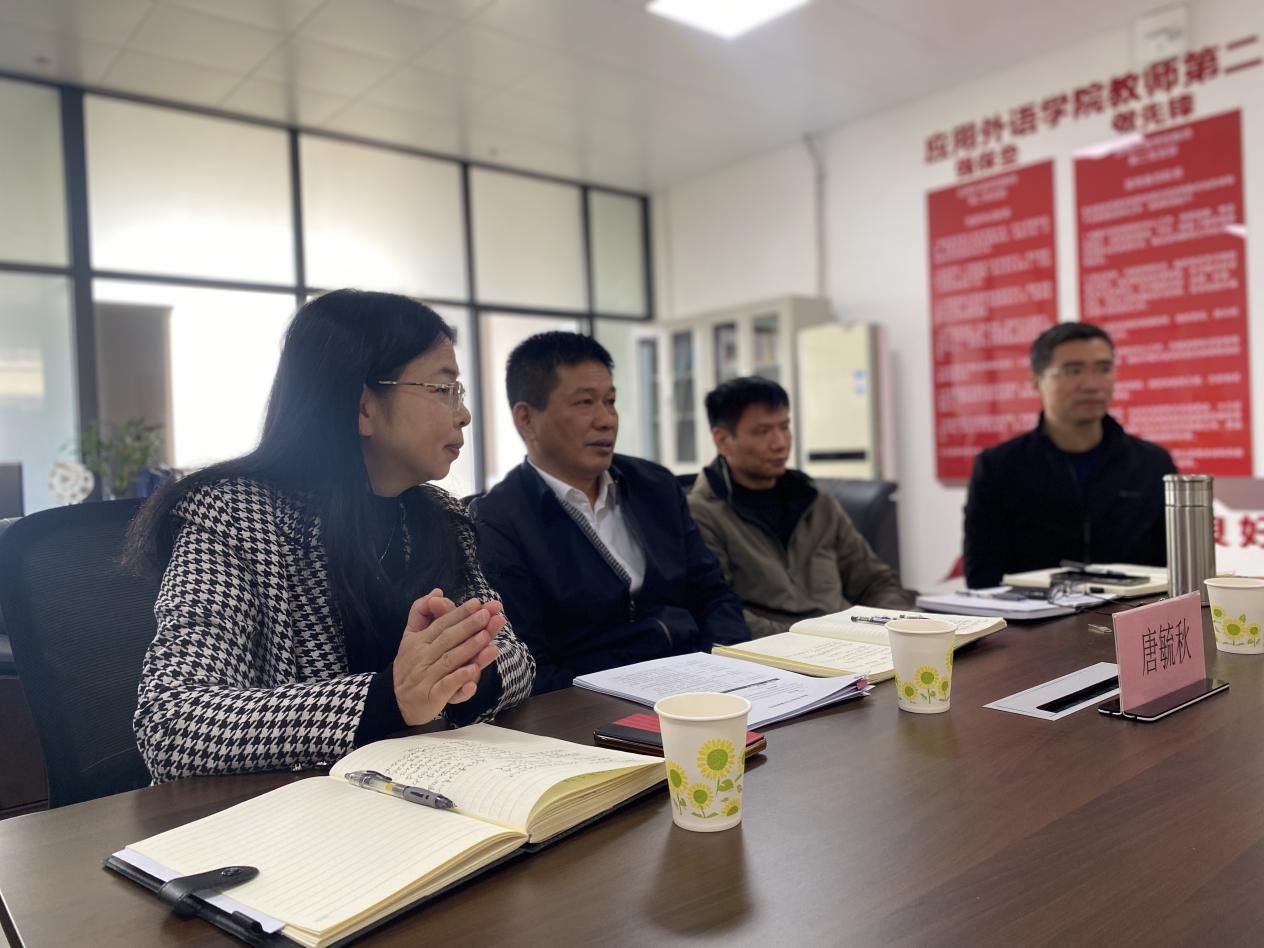 会上,胡红玲作为商务英语专业带头人,从专业定位、行业产业需求、核心课程建设、人才培养方案修订、师资队伍建设、产教融合发展、增强学生就业竞争力等方面对专业发展的现状和规划进行了详细汇报。唐毓秋副校长充分肯定了胡红玲的汇报,对应用外语学院专业改革和发展作了指导,并提出了具体建议,强调了专业发展与行业需求紧密结合的重要性。