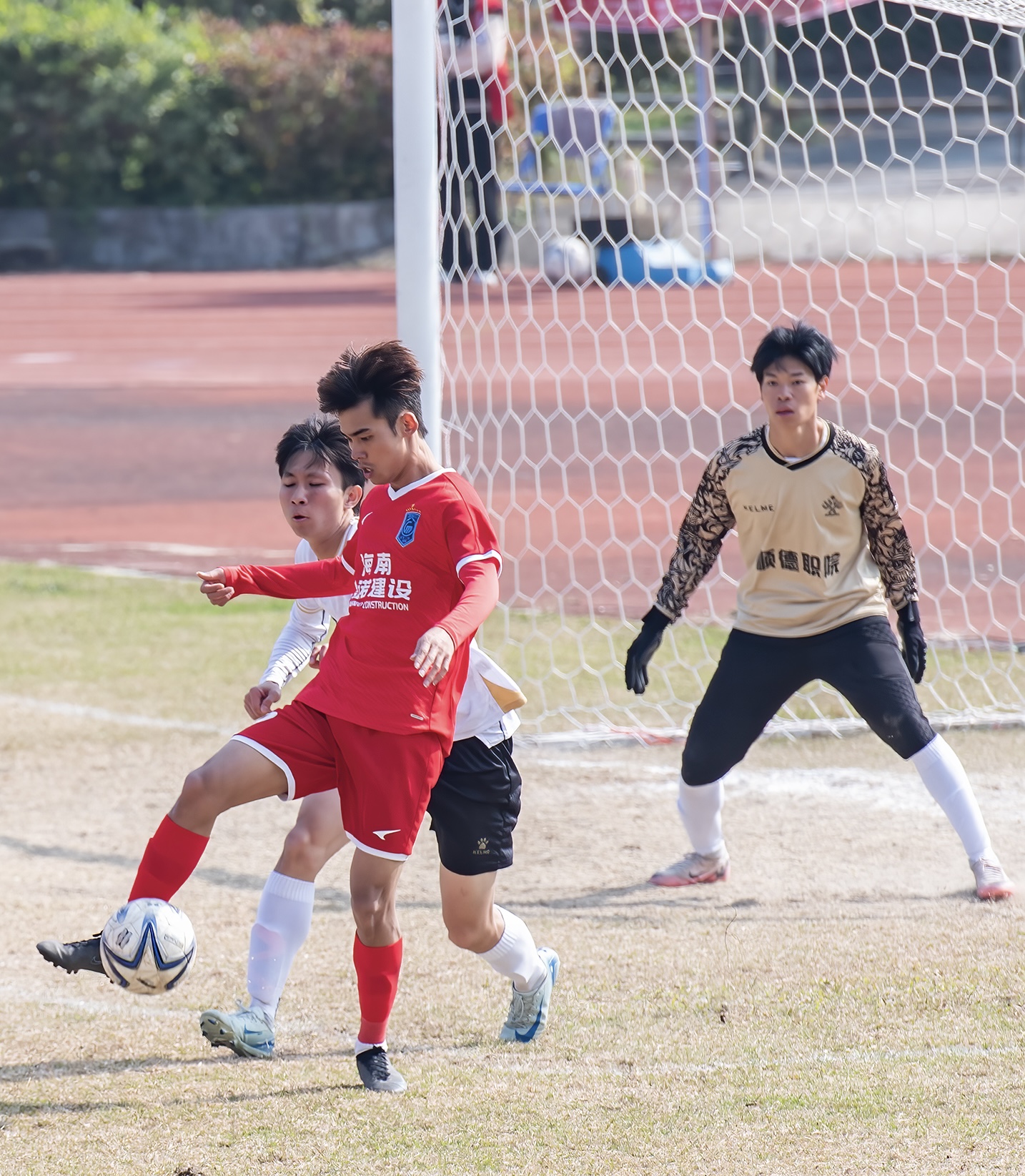 比赛伊始,顺德职院的队员凭借高大的身材和不错的综合素质,给广东工贸职院的防线制造了一定压力。开场30分钟,广东工贸职院的队员们始终未能找到破门良机。然而,僵局在第32分钟被打破,97号高毅衍凭借出色的个人能力,抓住机会首开纪录,为球队打开胜利之门。随后,18号杨文龙在第40分钟的进球,将上半场比分定格在2:0,让广东工贸职院的师生们为之沸腾。