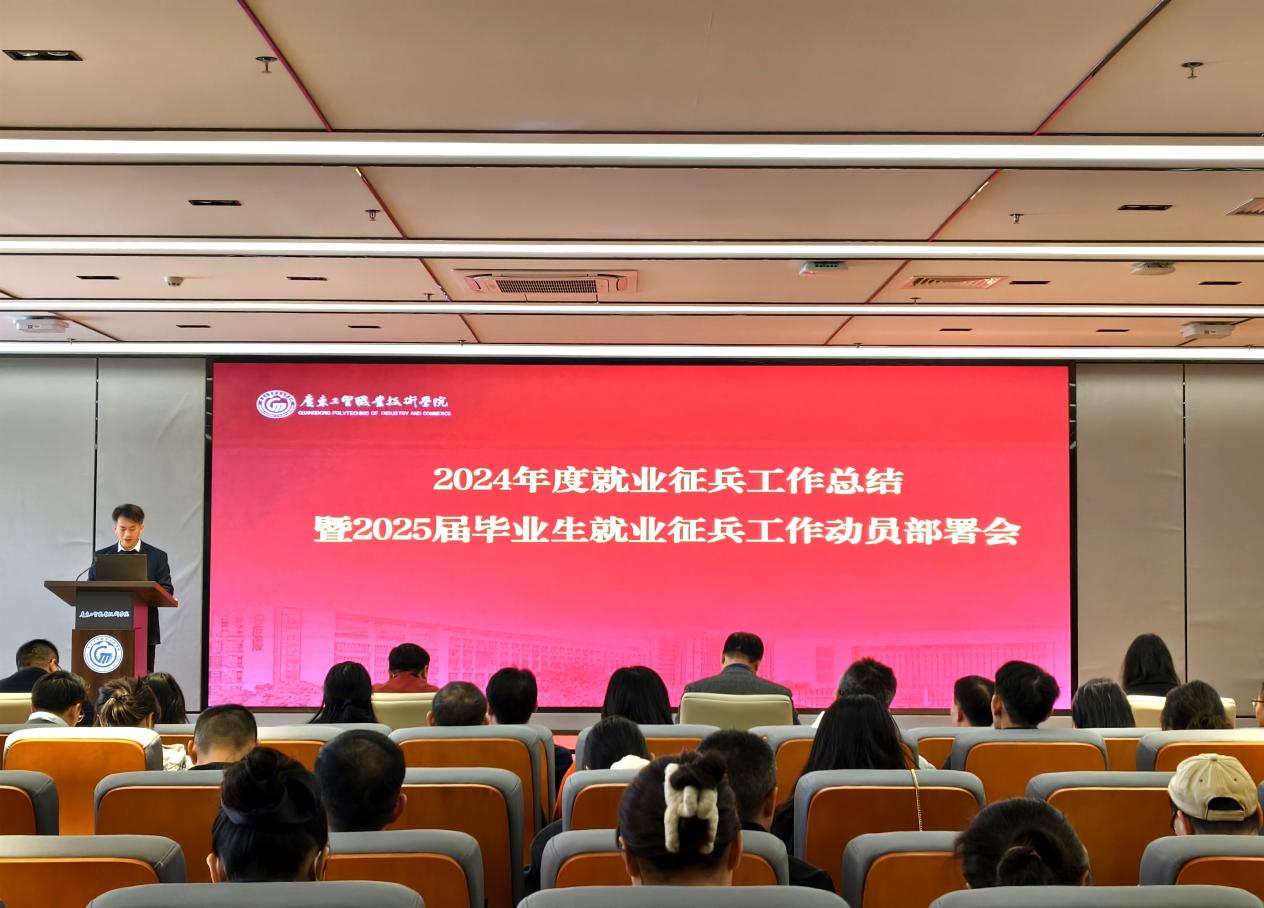 学校2024年毕业生就业及征兵工作总结暨2025届毕业生就业及征兵工作推进会于12月31日在白云校区图书信息楼1-629顺利召开,学校党委书记何汉武,党委副书记揭英荣,副校长赵红,党委委员、副校长唐毓秋出席会议,学工部、保卫部、创新创业学院、团委全体人员,教务部、科技部、对外交流合作部等相关职能部门负责人以及各二级学院书记、院长、副书记、全体辅导员参加会议,会议由学工部部长陈冠锋主持。