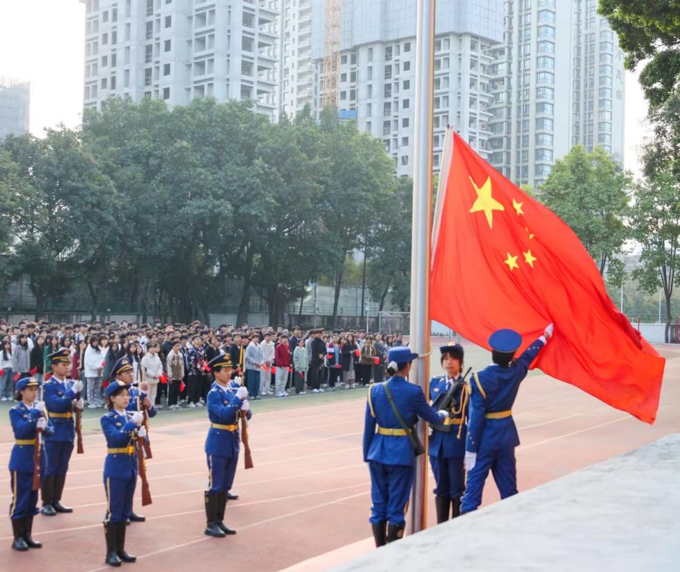 2025年1月1日清晨,学校天河、白云、荔湾三个校区同时举行庆祝元旦暨“弘扬时代精神,礼赞青春新程”主题升国旗活动。全校师生满怀热情与期待,齐聚操场,以蓬勃向上的精神风貌迎接新年的到来,奏响青春奋进的乐章。