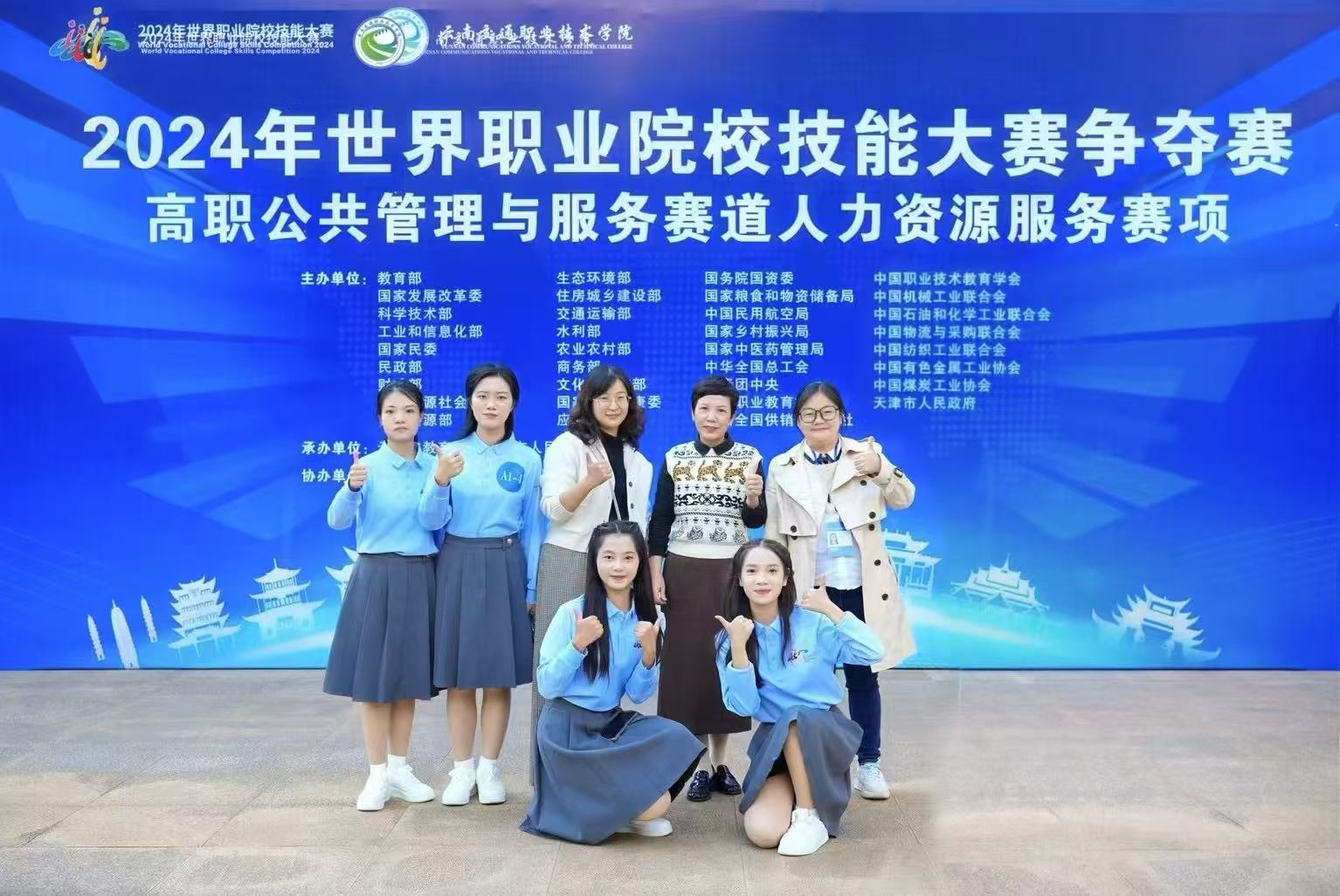 我校工商管理学院参赛团队(参赛选手:23级人力资源管理3班蔡奕宁、22级人力资源管理3班谢锶敏、23级商务管理1班廖德仪、21级人力资源管理学徒制3班陈端仪;指导老师:丘俏玲,周奕宜)在比赛中沉着冷静、操作娴熟,凭借扎实的专业技能和出色的团队协作能力,喜获银奖。
