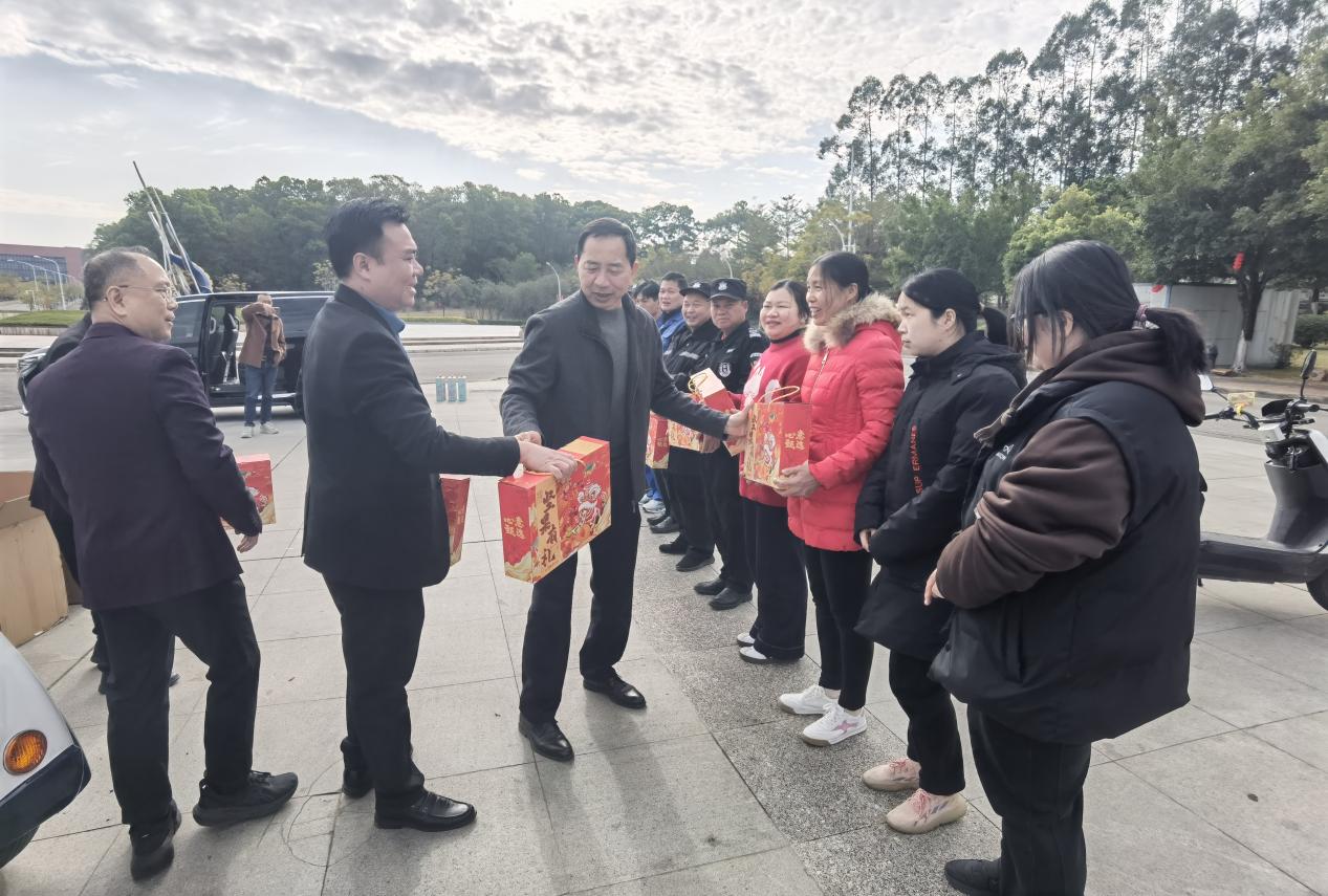 2025年1月29日,农历乙巳蛇年大年初一,校园内洋溢着别样的温情。当日上午,学校领导副校级干部杜汉清同志一行前往白云校区、荔湾校区和天河校区亲切看望和慰问大年初一坚守一线的工作人员,向他们致以新春的问候和诚挚的感谢。