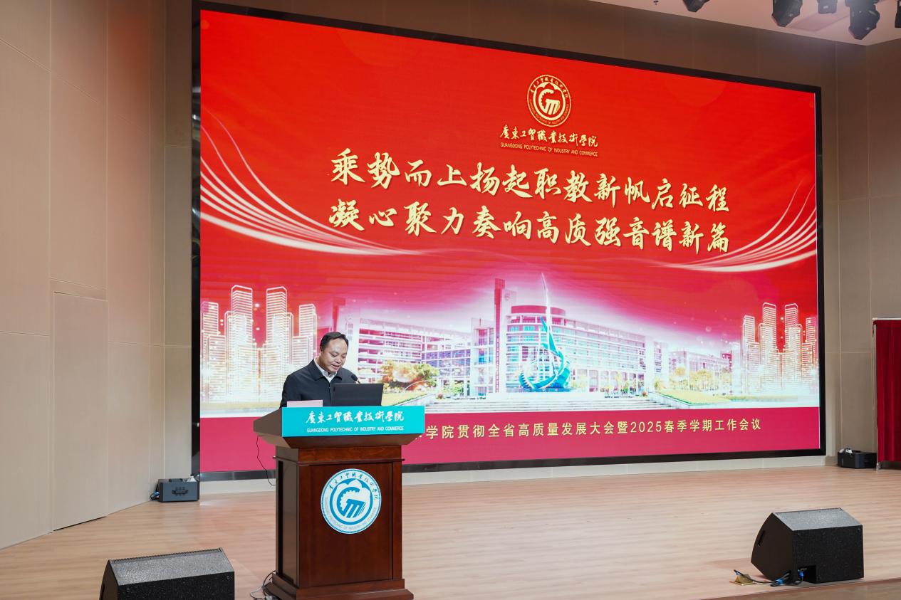 阳春三月,春意盎然,万物复苏。3月4日,学校在白云校区博学楼报告厅召开100%精准出码规律资料网站贯彻全省高质量发展大会精神暨2025年春季学期工作会议,通过学习精神、专题报告、分享经验、谋划举措、揭榜攻坚、深化合作等方式,全面吹响学校高质量发展的冲锋号。会上集中学习了2025年广东省高质量发展大会和全省教育大会精神。本次大会的主题是“乘势而上扬起职教新帆启征程,凝心聚力奏响高质强音谱新篇”。 学校党委书记何汉武以《乘势而上 扬起职教新帆启征程 凝心聚力 奏响高质强音谱新篇》为题作工作报告,学校党委副书记揭英荣主持会议。