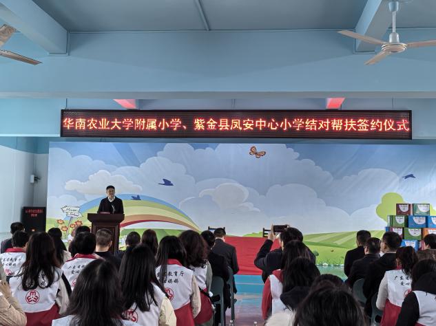 3月6日,在“三八”国际妇女节即将到来之际,在河源市紫金县凤安镇,学校参与了由省教育厅联合多所高校举办的一系列教育帮扶活动。此次活动涵盖了爱心妈妈关爱农村留守儿童和困境儿童活动启动仪式、华农附小与凤安中心小学结对帮扶签约仪式、科普实践展示、“航天宝”生产基地揭牌仪式以及学校工商学院党总支与佛岭村党总支党建共建结对帮扶签约仪式等多个环节。省教育厅副厅长程大欣、河源市副市长谢春艳、相关高校领导、省教育厅相关处室领导、市县镇有关领导和工作队以及师生干部群众共300多人参加了活动。作为组团单位代表,学校党委委员、副校长唐毓秋率队全程参与了此次活动。