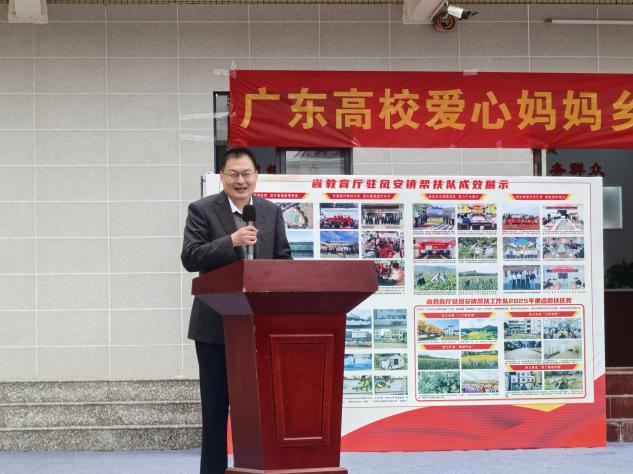 在“爱心妈妈关爱农村留守儿童”活动启动仪式上,省教育厅党组成员、副厅长程大欣宣布广东高校爱心妈妈乡村工作站正式启动并讲话,他指出,省教育厅纵向帮扶和驻镇帮镇扶村工作要聚焦落实乡村振兴、“百千万工程”重点任务,突出实效,不断提升教育帮扶水平,打造教育特色品牌。各高校积极响应省教育厅号召,提出将结合“三下乡”社会实践,组织师生为乡村儿童提供支教助学、心理辅导等常态化支持。