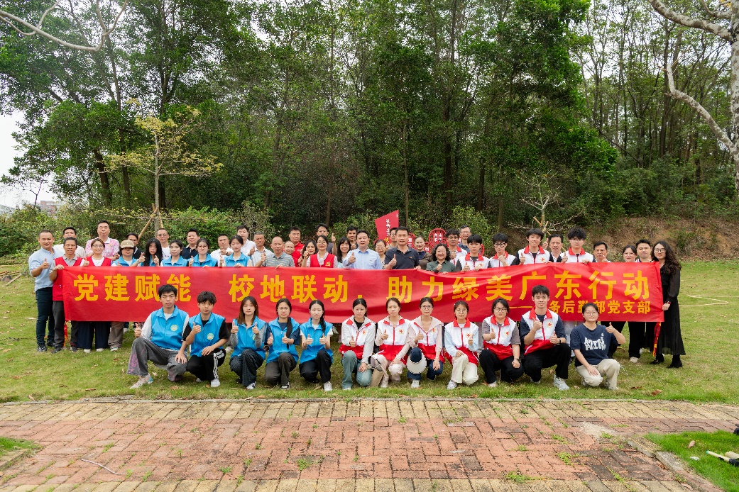 为深入贯彻落实习近平生态文明思想、践行“绿水青山就是金山银山”的理念、助力绿美广东生态建设行动,3月28日上午,总务后勤部党支部在白云校区组织开展“党建赋能,校地联动,助力绿美广东行动”植树主题党日活动。学校党委委员、副校长孙师家,钟落潭高职园区社区居委书记、主任冯晋碧,后勤企业代表,学生志愿者代表,以及总务后勤部有关人员共计50余人参加了活动。