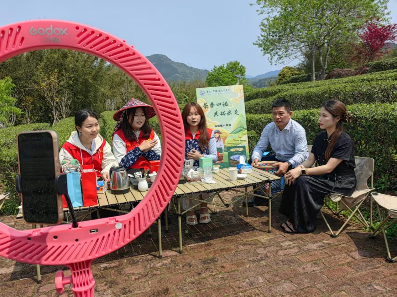 开幕式后,师生深入茶园,采摘新茶,体验传统制茶工艺,并通过直播方式与茶农深入交流茶叶种植与加工技术,共同探讨提升茶叶销量的新举措。在茶园地头,唐毓秋为学生们上了一堂生动的“思政”实践课。他表示,职业教育应扎根地方、服务产业;青年更应胸怀天下、志存高远,农村是广阔舞台大有作为,要把论文写在大地上,在实践中锤炼技能,勇担振兴乡村的时代使命。他强调,学校将始终秉承“地方所需、工贸所能”的原则,充分发挥专业优势,与地方政府和企业携手,共同培养适应地方需求的高素质技能人才,为“双百行动”注入新动力。