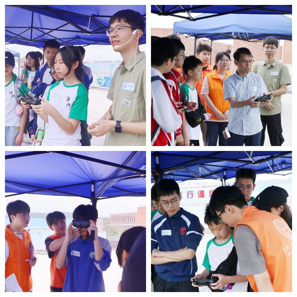 活动的第二站是“无人机翱翔探未来,虚拟智绘新天地”的课堂体验活动,学生们体验了祖为国老师、周宇轩老师主讲的《无人机飞行课堂体验》和申晨老师主讲的《地图:探索世界的力量》。在《无人机飞行课堂体验》上,主讲老师通过“讲解-展示-体验”三环节为澳门初中生展示了一堂丰富的无人机课堂。通过专业飞手进行穿越机高难度花式表演、直观展现无人机技术在竞技领域的创新突破、借助FPV(第一人称视角)设备实现沉浸式穿越机驾驶体验,让澳门学生在实时图传、三维空间操控中感受了人机协同的科技魅力。