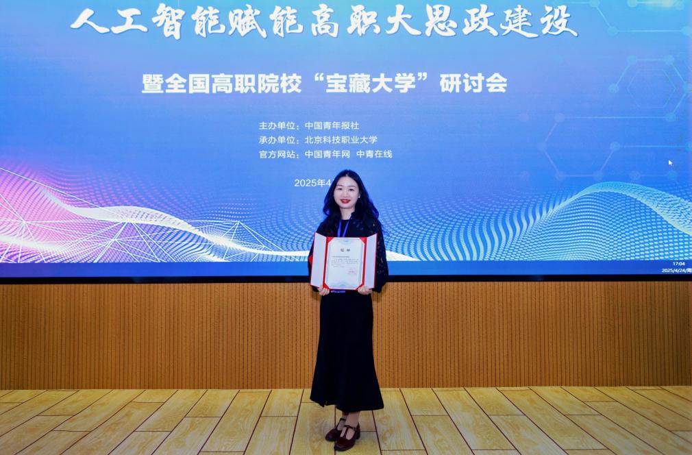 2025年4月24至25日,由中国青年报社主办的人工智能赋能高职大思政建设暨全国高职院校“宝藏大学”研讨会在北京举办。会上,中国青年报社发布了全国高职院校“宝藏大学”征集展示活动入围优秀案例名单,我校由马克思主义学院教师陈莹颖、汽车工程学院教师桂晶晶、欧敏共同撰写的思政育人案例脱颖而出,成功入选全国高职院校“宝藏大学”优秀案例。陈莹颖应邀出席此次研讨会。本次研讨会被中国青年报头版报道。