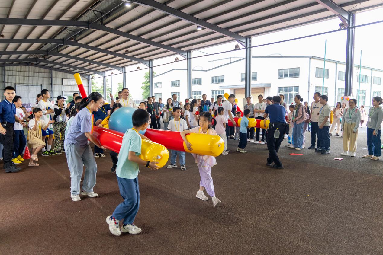 活动围绕“农业科技”主线,设计了四大实践环节,让亲子家庭在动手、观察与协作中,感受科技赋能与传统智慧的碰撞。基地里的风雨田径场变身“亲子竞技场”;“神龙取水”“齐心协力”“同舟共济”等破冰游戏中,原本稍显拘谨的家庭迅速熟络;“同舟共济”环节,有家长领着孩子迅速在浮舟上前行,有家长和孩子一起搭配将浮舟搬到队伍前面,在响彻全场的加油声、欢笑声中完成游戏。随后家长与孩子走进从化区生态优质丝苗米产业园的全自动化生产线。透过透明参观通道,智能筛选机精准剔除杂质、色选机快速辨别米粒优劣、包装机器人高效完成装袋……“太像科幻片里的机器了!”不少小朋友盯着设备惊叹道。工作人员介绍:“这条生产线每天能加工250吨/天大米,一个月就能将半年整个珠三角的大米加工完毕。”家长们纷纷感慨:“科技真是农业的‘加速器’!”