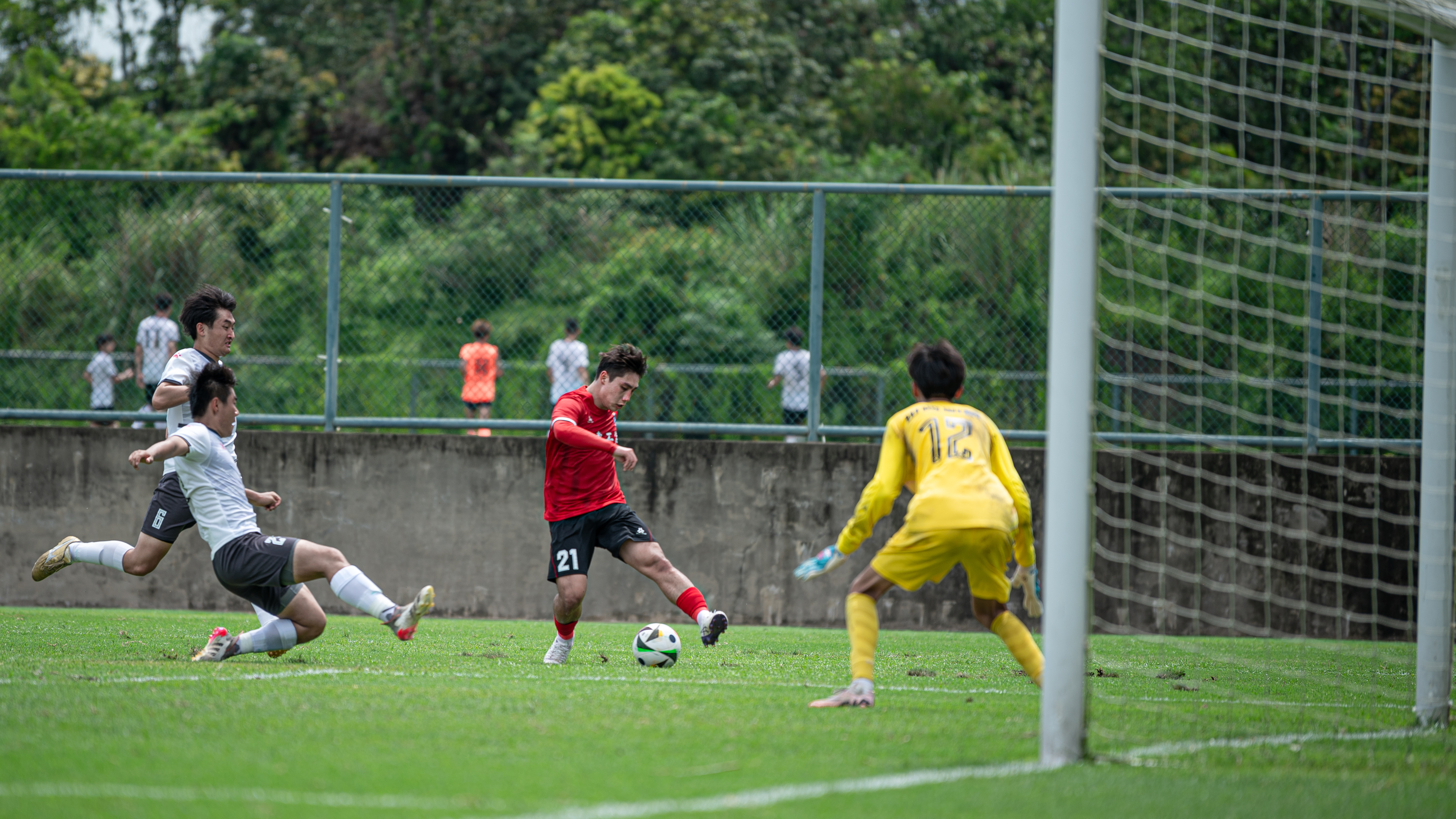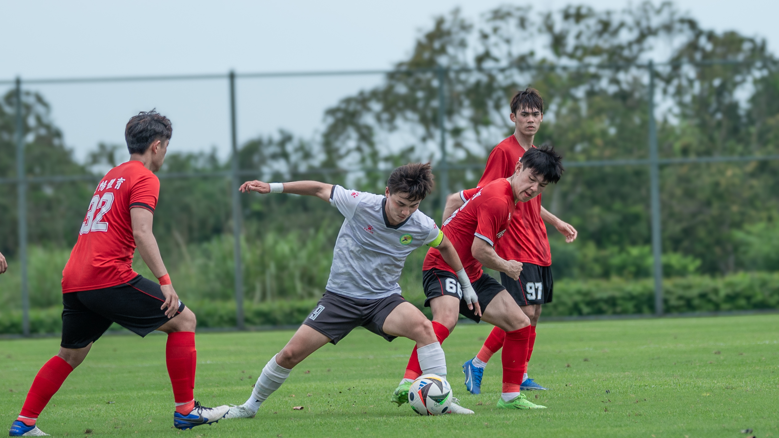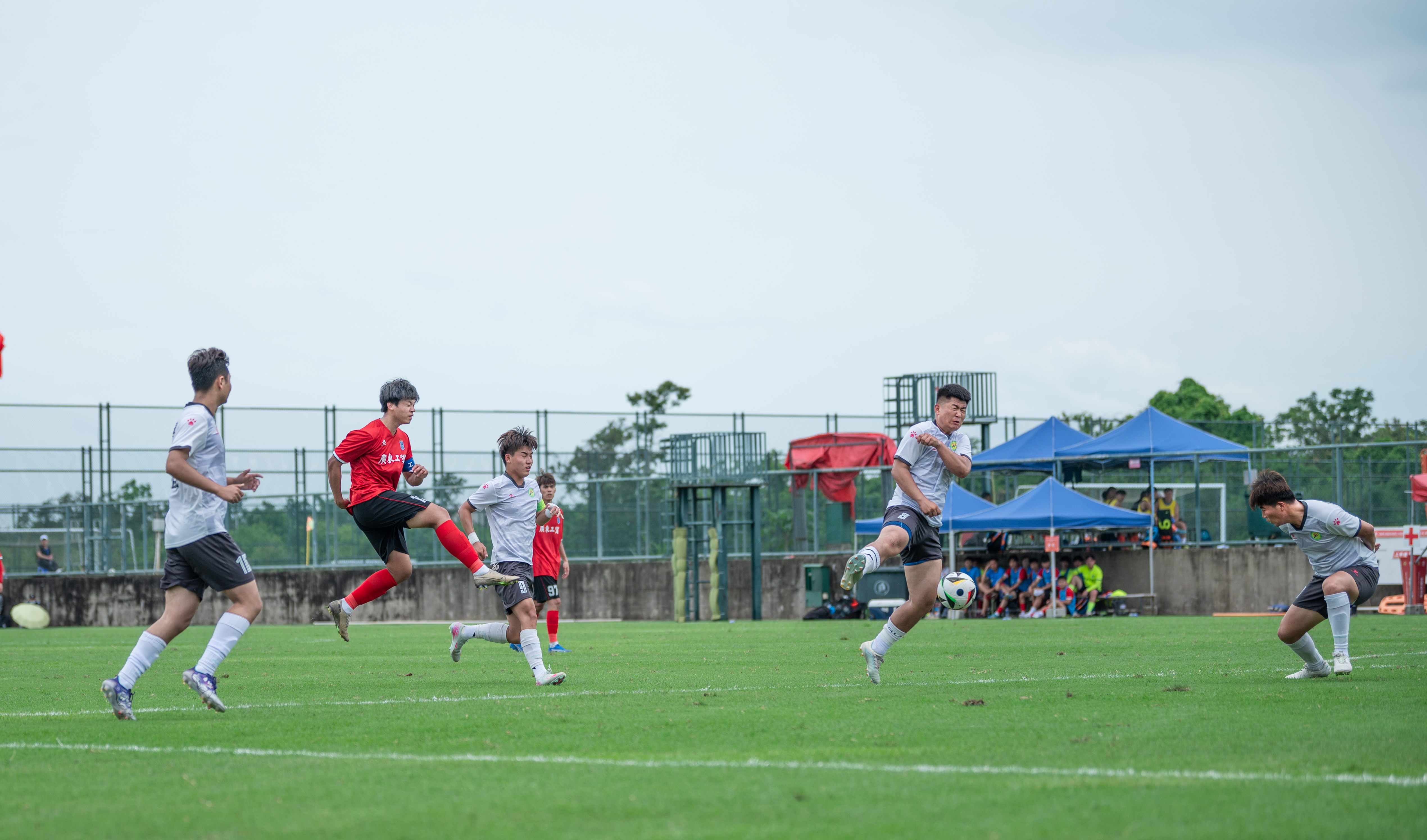 6月1日14时,广东工贸迎来小组赛最后一场较量,对手为山西职业技术学院。比赛当日,海口气温高达36℃,面对高温“烤”验与实力强劲的对手,双方球员依然斗志昂扬,展开激烈角逐。上半场,双方防守严密,均未能打破僵局。下半场开场16分钟,广东工贸打破场上僵局,率先取得进球;山西职业技术学院通过迅速调整战术,耐心组织进攻,于下半场第30分钟将比分扳平;第37分钟,广东工贸队员陈先锦抓住转瞬即逝的机会,在禁区外突施冷箭,一脚精彩远射直挂球门左上方死角,再次将比分超出。然而,比赛胜负悬念丛生,山西职业技术学院凭借球员的身体优势与默契配合,在比赛最后阶段再次扳平比分,最终双方以2:2握手言和。