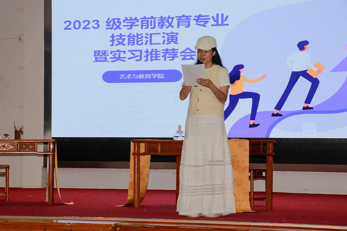 活动伊始,学前教育专业技能汇演正式拉开帷幕。艺术与教育学院院长张幼晖致辞,强调了学院“以德为先、能力为重、实践为基”的教育理念,致力于培养有爱心、懂专业、擅创新的高素质幼教人才,同时对学生提出了殷切的希望。此次的汇演暨实习推荐会,也致力于搭建校企合作、供需对接的桥梁,深化实习、就业一体化的培养模式。