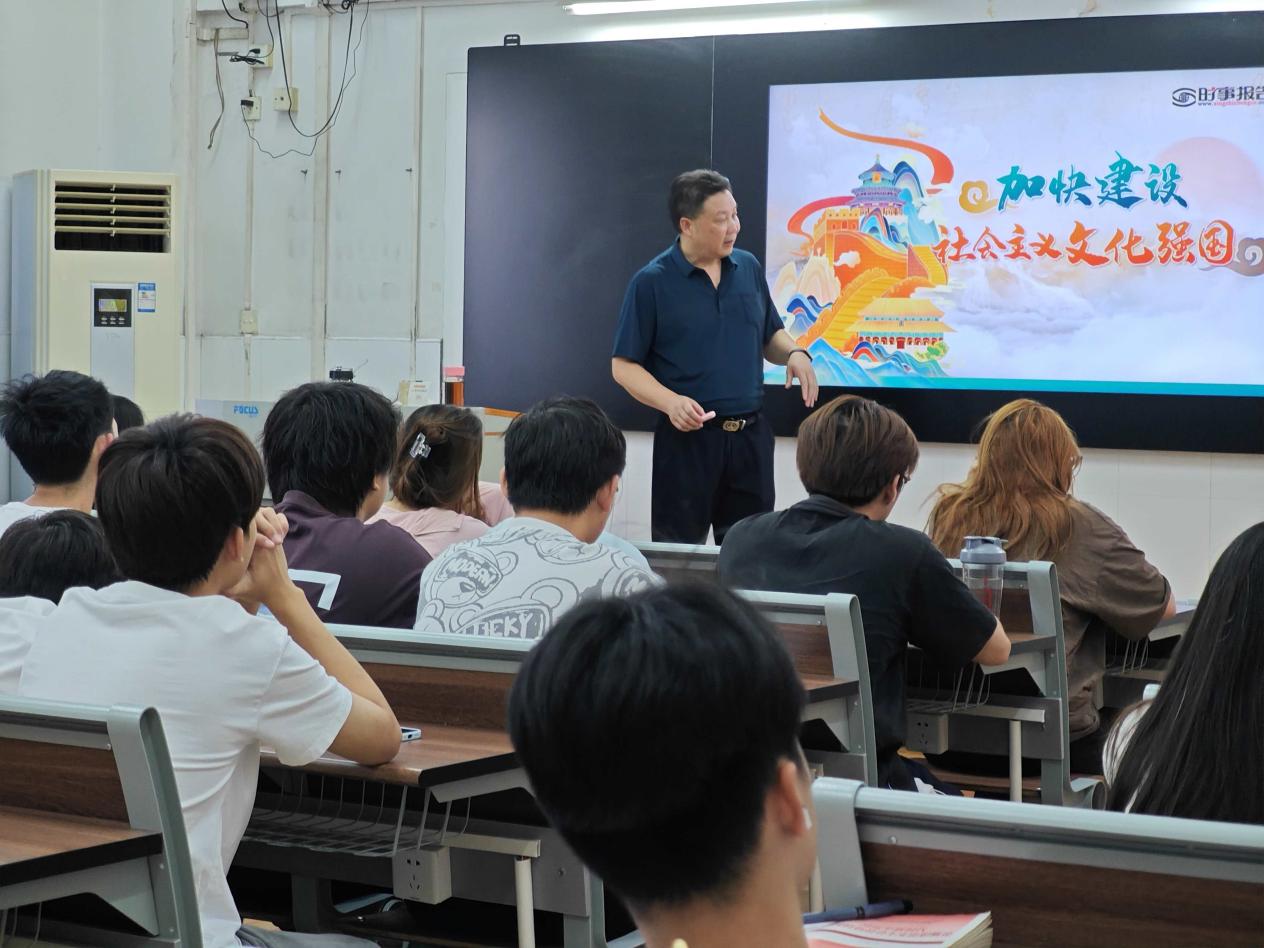 本次思政课以“加快建设社会主义文化强国”为主题,孙师家授课立足国家战略全局,他深刻阐述了建设社会主义文化强国的重大意义、核心任务与时代要求,他结合当前国内外文化发展态势,深入剖析了文化自信的根基所在,强调繁荣发展文化事业和文化产业、提升国家文化软实力和中华文化影响力的紧迫性与路径。他还结合艺术设计类学子的专业背景,勉励大家勇担使命,将个人艺术追求融入国家文化发展洪流,以专业技能讲好中国故事,成为新时代先进文化的践行者、传承者与创新者。