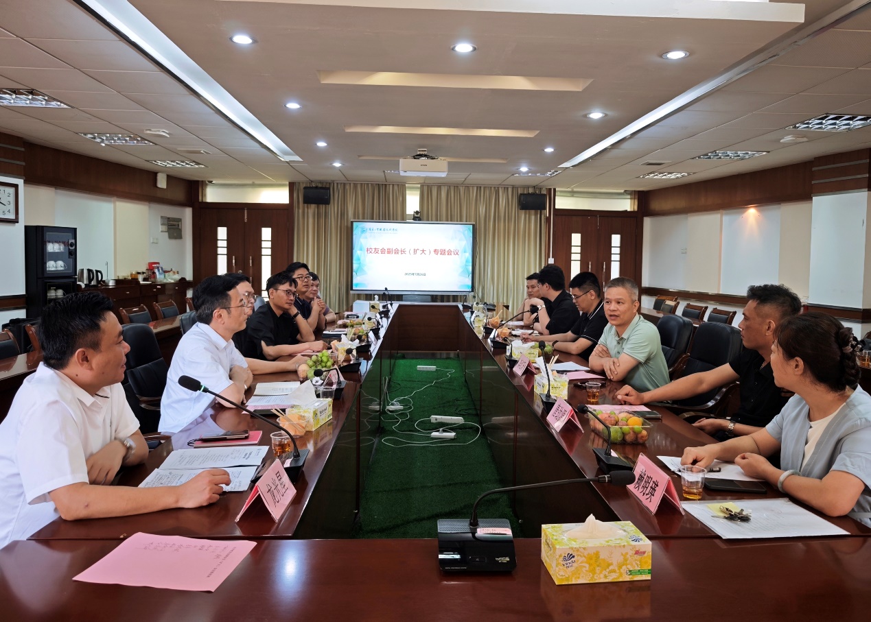 2025年7月26日下午,学校校友会在天河校区西区中心会议室召开校友会副会长(扩大)专题会议,重点围绕校友会进一步发展建设开展研讨。受校友会会长赵红委托,会议由秘书长龙光星主持,副会长罗广坤、李红轩、郭华彬、唐劲源、吴奇润及理事李学林、李军等12名代表出席会议,共同谋划校友会未来发展蓝图。